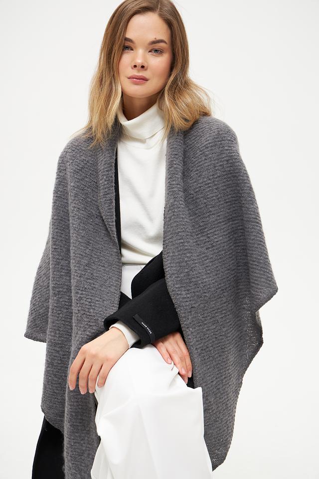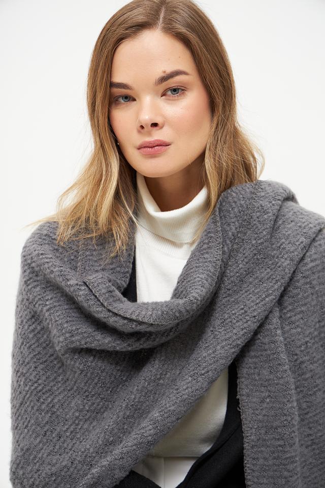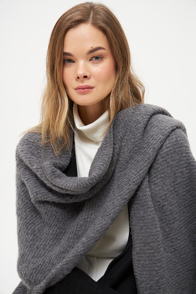 Шарф имеет фактурную вязку, которая придает ему объем и уютный вид. Большой размер позволяет использовать его не только как шарф, но и как палантин или шаль, защищая от холода в прохладную погоду.
