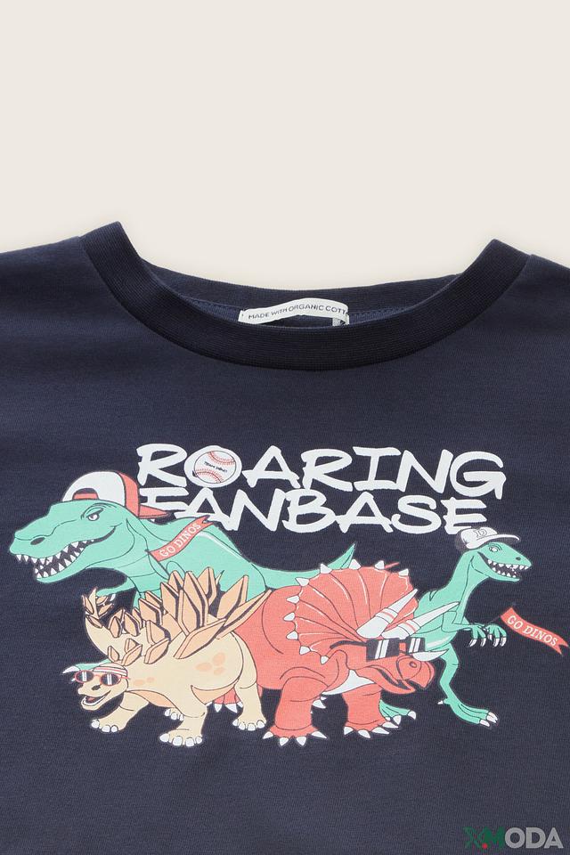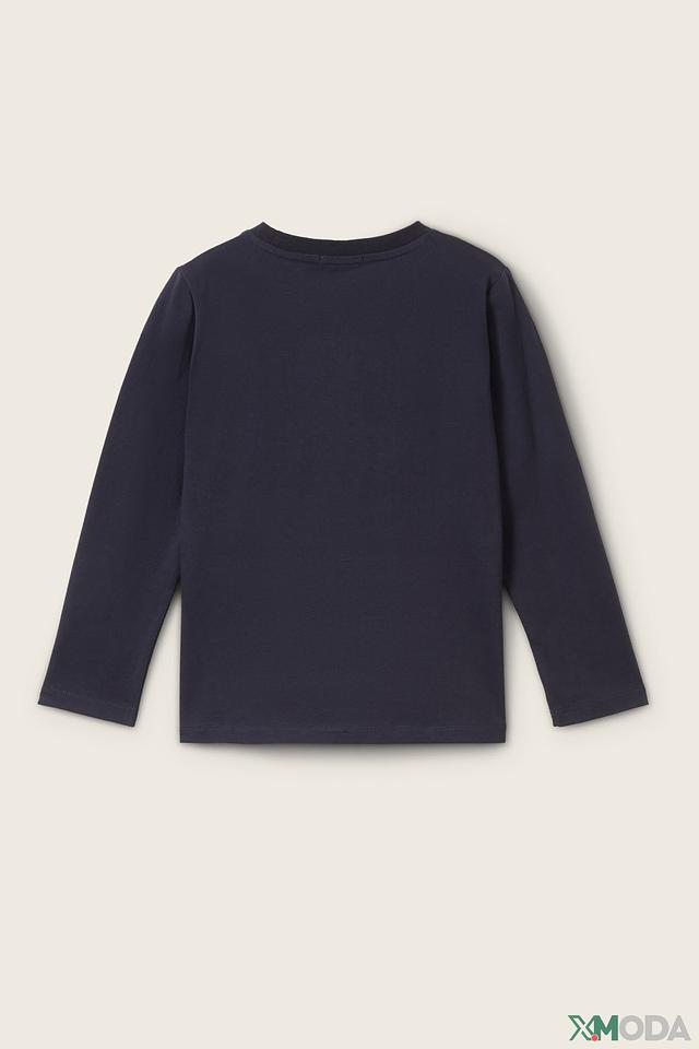 Синяя футболка Tom Tailor с длинным рукавом для мальчиков, украшенная ярким принтом с изображением динозавров. Изготовлена из 100% хлопка, обеспечивая комфорт и удобство в носке. Состав: хлопок 100%