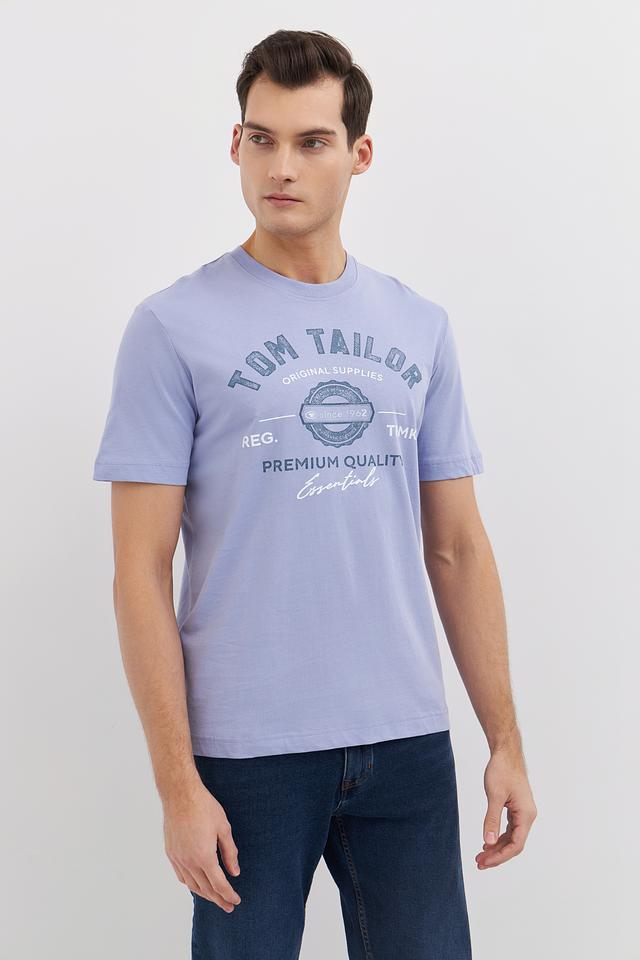 Мужская футболка Tom Tailor лавандового цвета с оригинальным принтом на груди. Изготовлена из 100% хлопка, обеспечивающего комфорт и воздухопроницаемость. Отличный выбор для повседневного образа. Состав: хлопок 100%