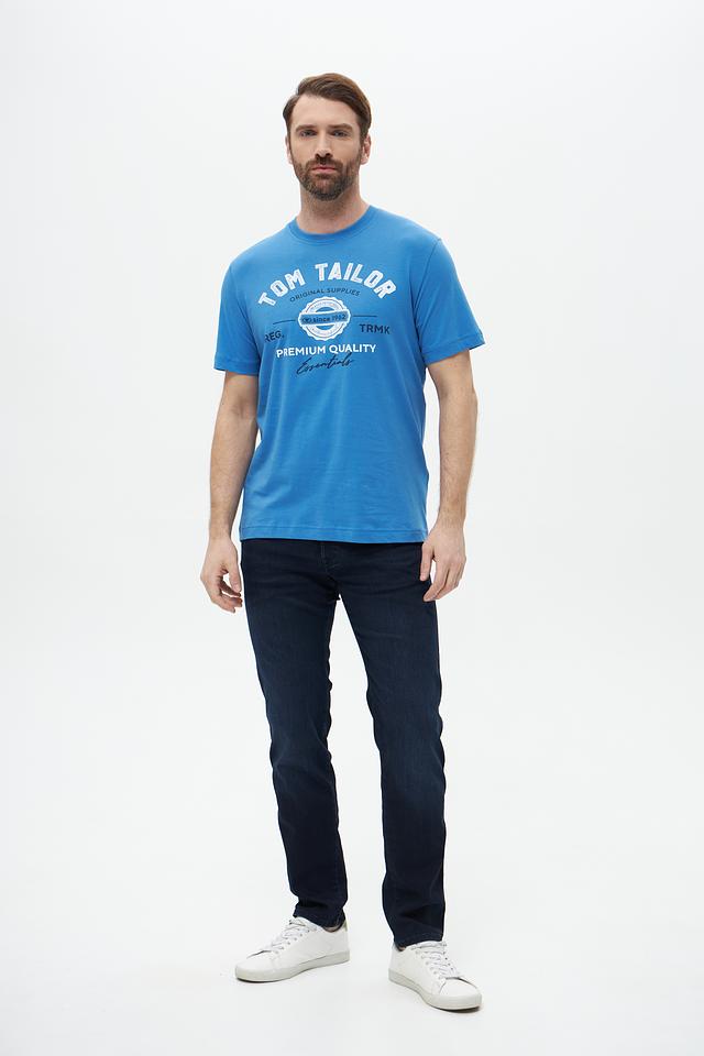 Голубая футболка Tom Tailor из 100% хлопка с оригинальным логотипом бренда. Классический крой и мягкий материал обеспечивают комфорт в повседневной носке. Состав: хлопок 100%