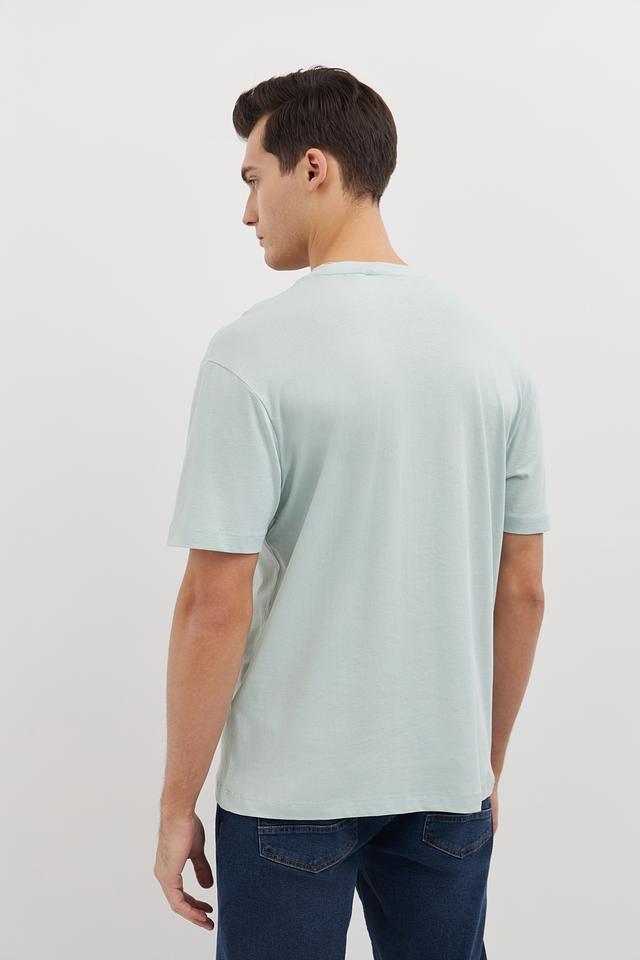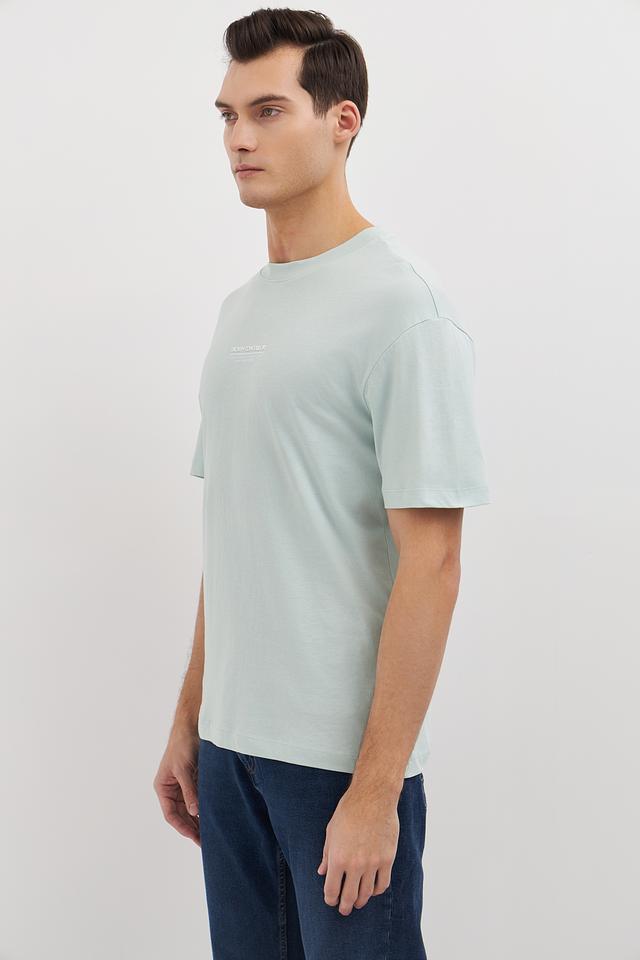Особенностью данной модели является её нежный мятный цвет, который легко сочетается с различными элементами гардероба. На груди расположена небольшая вышивка с логотипом бренда, добавляющая футболке стильный акцент.