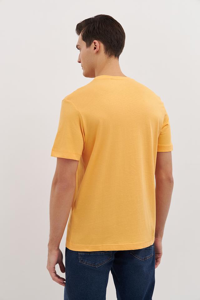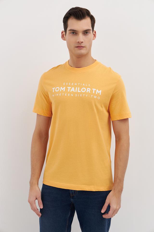 Мужская футболка Tom Tailor Essentials горчичного цвета с круглым вырезом и надписью на груди. Изготовлена из 100% хлопка, обеспечивая комфорт и воздухопроницаемость. Состав: хлопок 100%