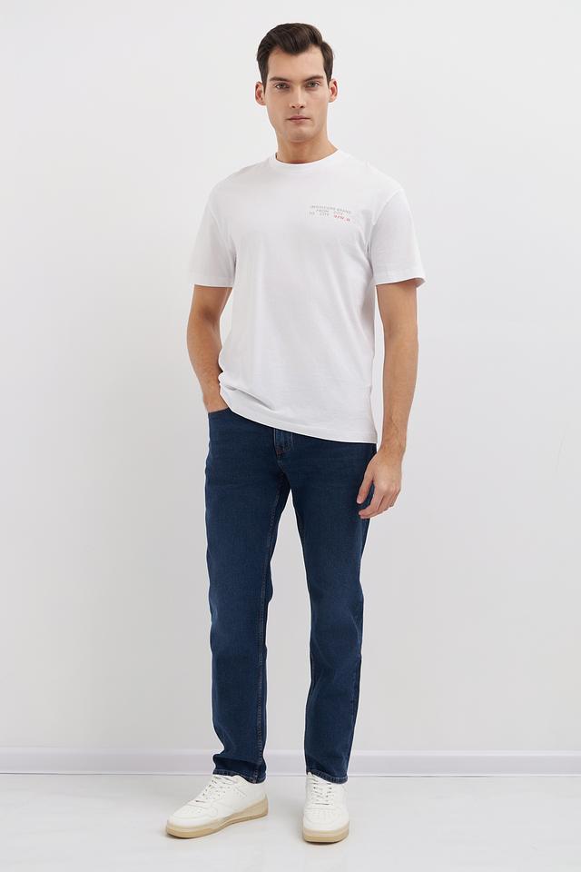 Классический прямой крой футболки обеспечивает свободу движений, а короткие рукава делают ее идеальным выбором для теплой погоды. На груди расположен небольшой, стильный принт, который добавляет индивидуальности.