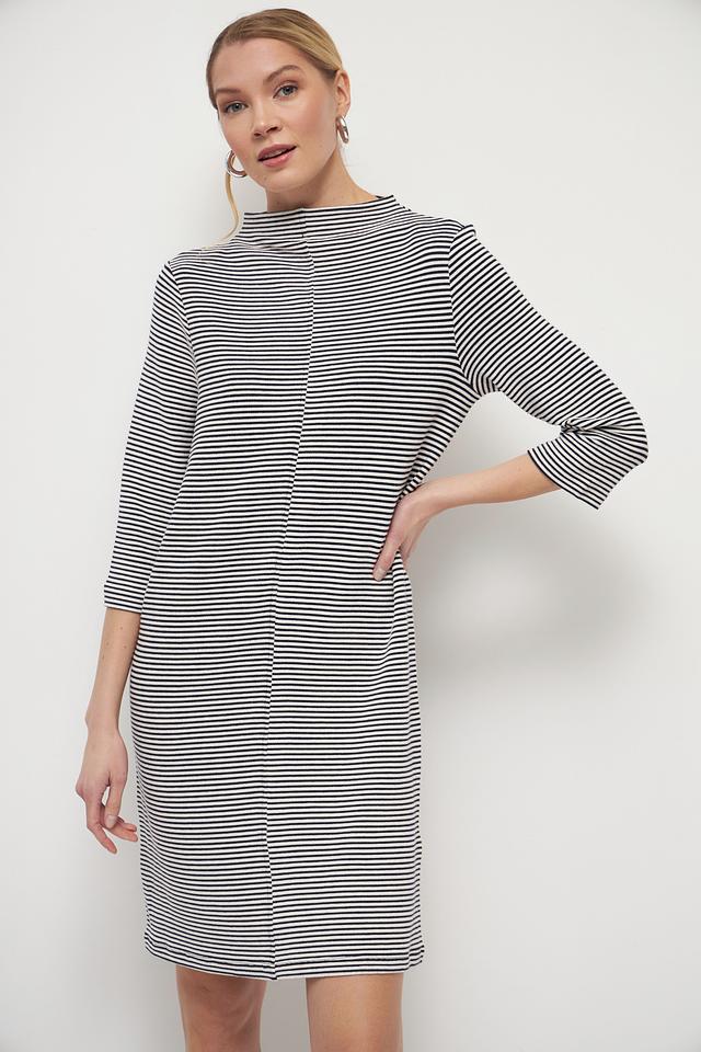 Это платье от Tom Tailor – идеальный вариант для создания непринужденного образа. Модель выполнена в горизонтальную полоску, сочетающую в себе белый и тёмно-синий цвета.