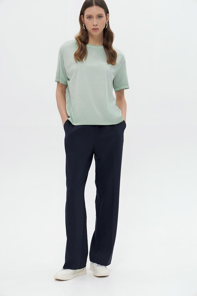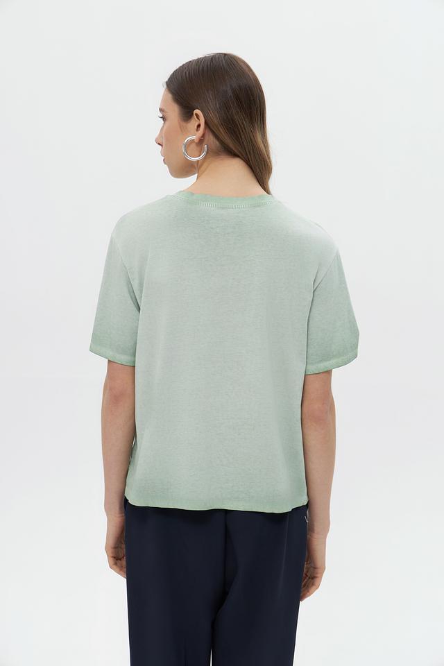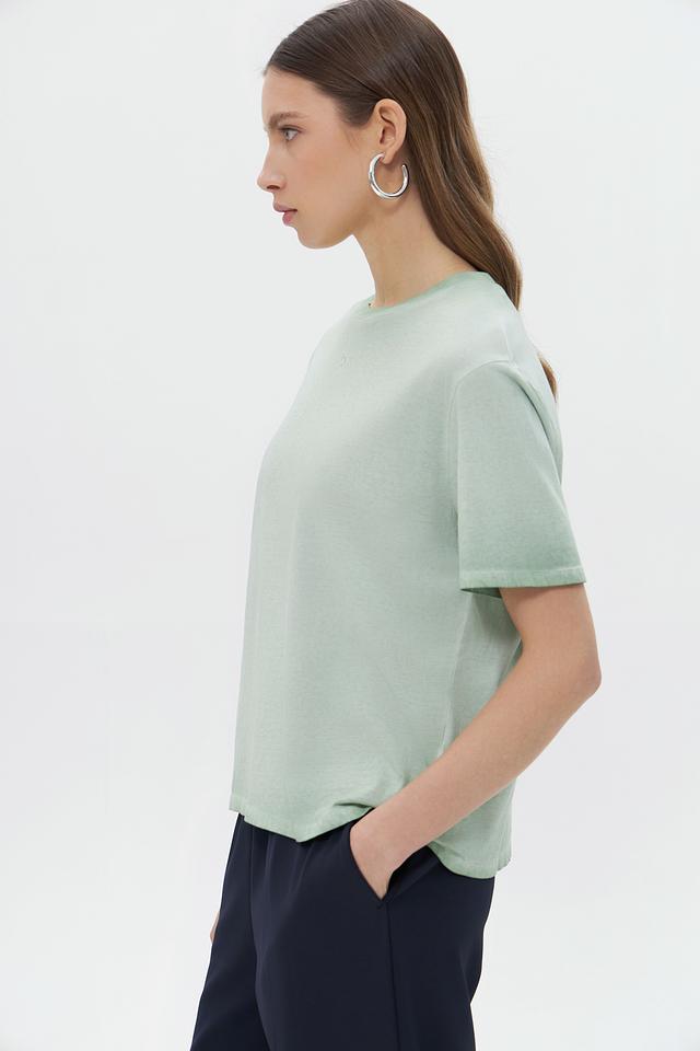 Благодаря своему универсальному дизайну и приятному мятному оттенку, эта футболка легко сочетается с различными элементами одежды — от джинсов и шорт до юбок и брюк. Она идеально подходит для создания повседневных образов в стиле casual.
