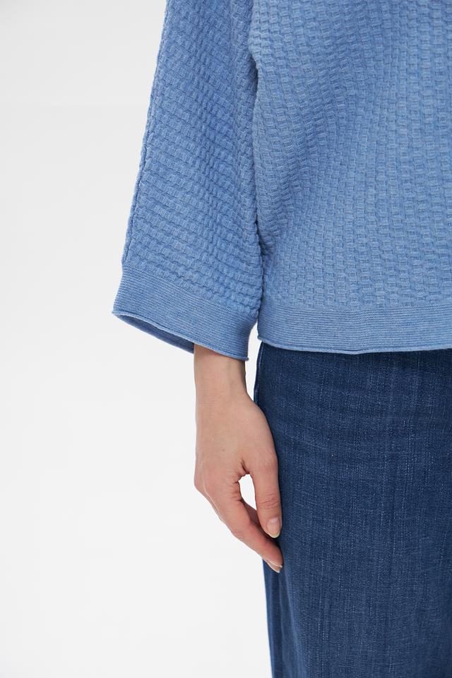 Женский пуловер Tom Tailor голубого цвета с объёмной текстурой. Изготовлен из сочетания полиэстера и хлопка, обеспечивающего комфорт и практичность. Свободный крой и оригинальный дизайн. Состав: полиэстер 65%, хлопок 35%
