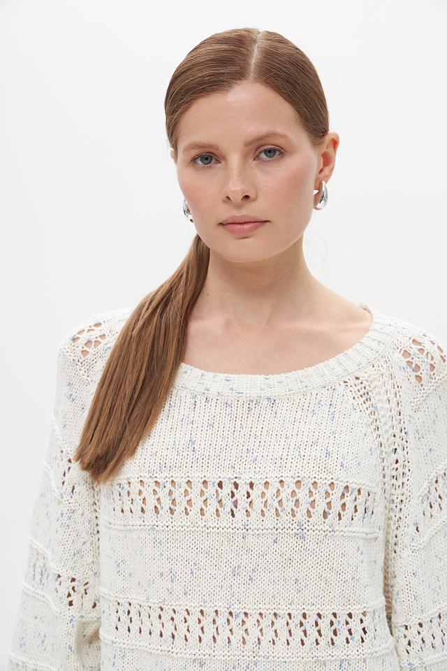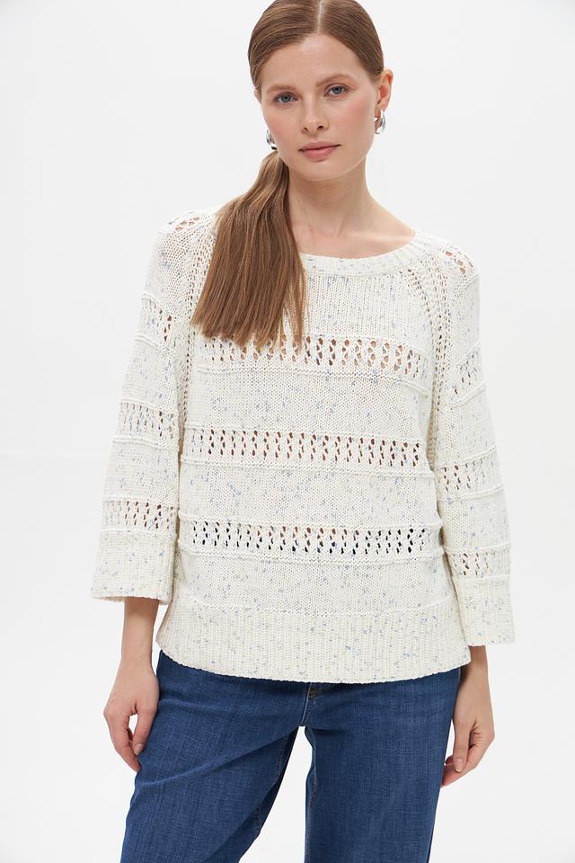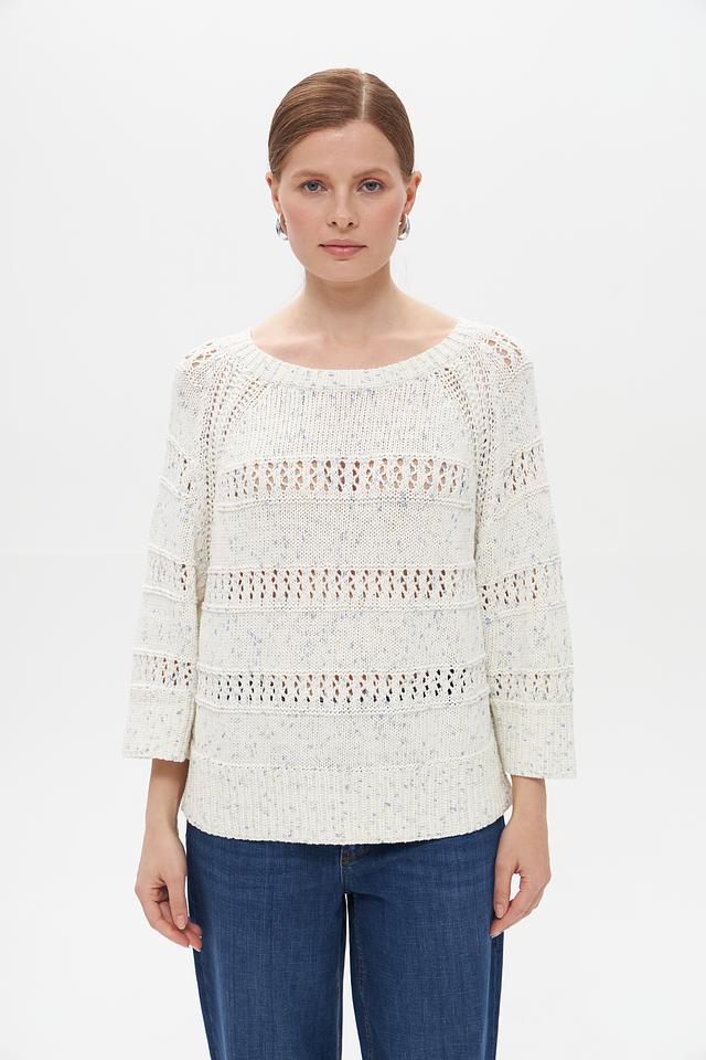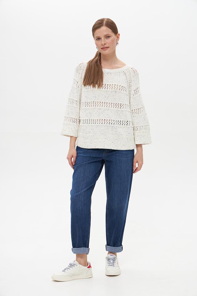 Женский пуловер Tom Tailor кремового цвета с ажурными вставками. Изготовлен из 100% хлопка, обеспечивающего комфорт и воздухопроницаемость. Стильный и удобный выбор для повседневного гардероба. Состав: хлопок 100%