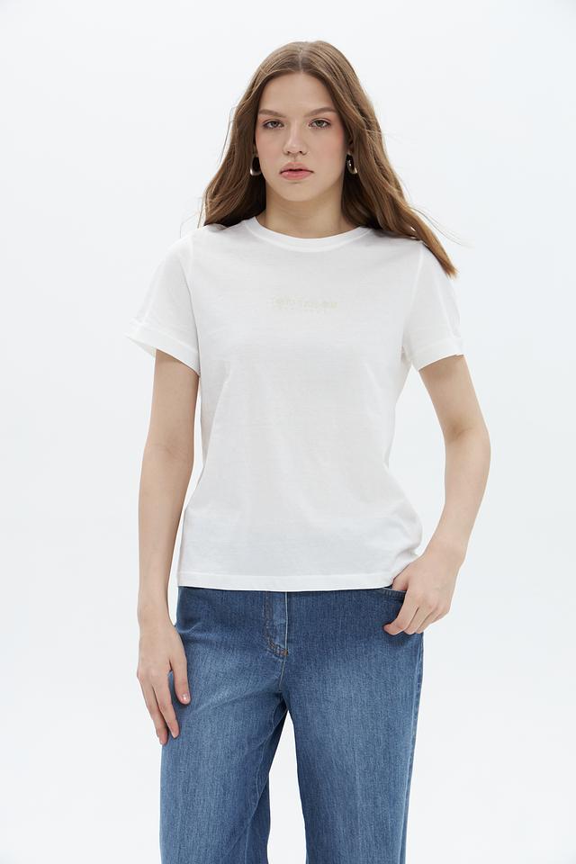 Классический крой футболки подходит для любого типа фигуры. Небольшой логотип бренда на груди добавляет стильный акцент. Футболка идеально сочетается с джинсами, шортами или юбками, создавая непринужденный и современный образ.