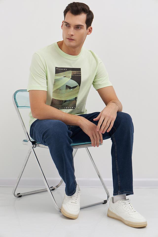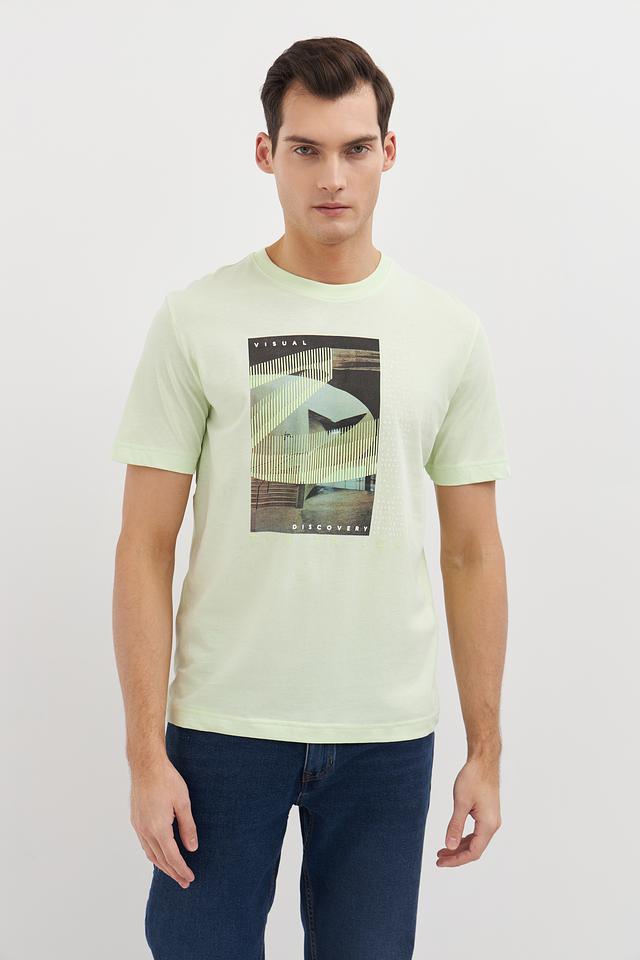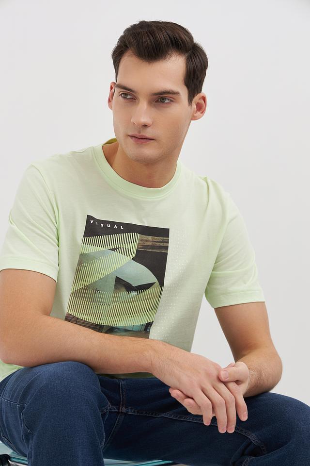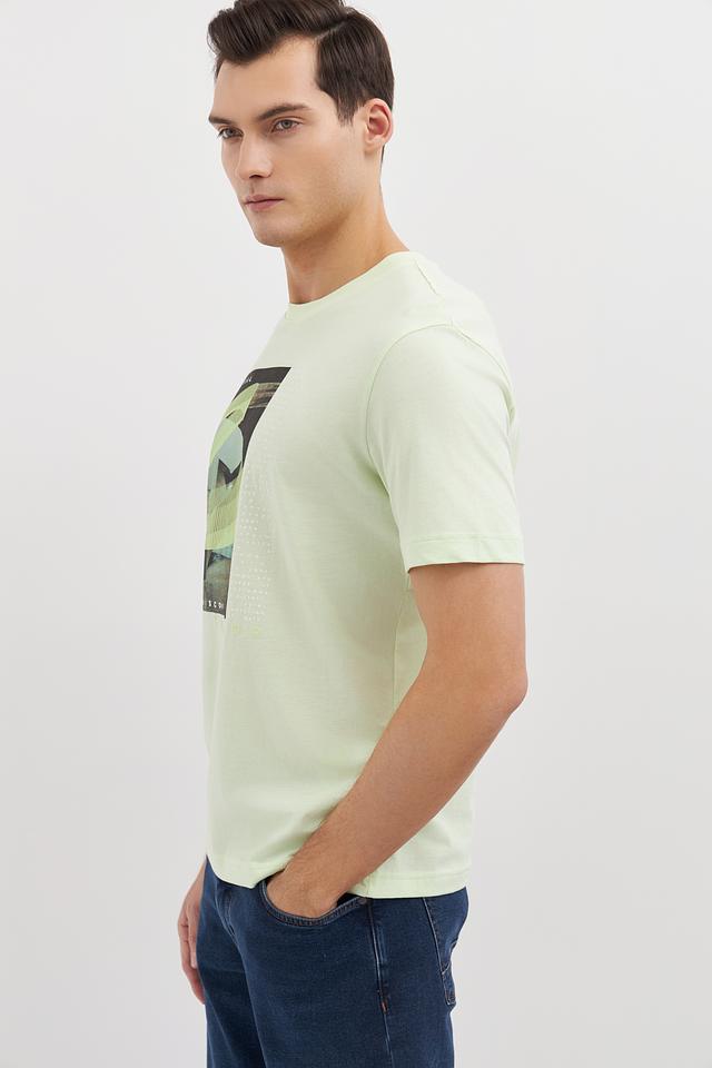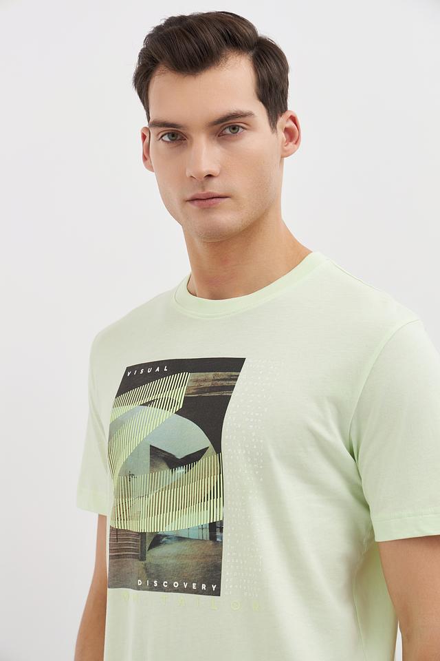Мужская футболка Tom Tailor лаймового цвета с оригинальным графическим принтом. Изготовлена из 100% хлопка, обеспечивающего комфорт и воздухопроницаемость. Стильный и удобный выбор для повседневного образа. Состав: хлопок 100%