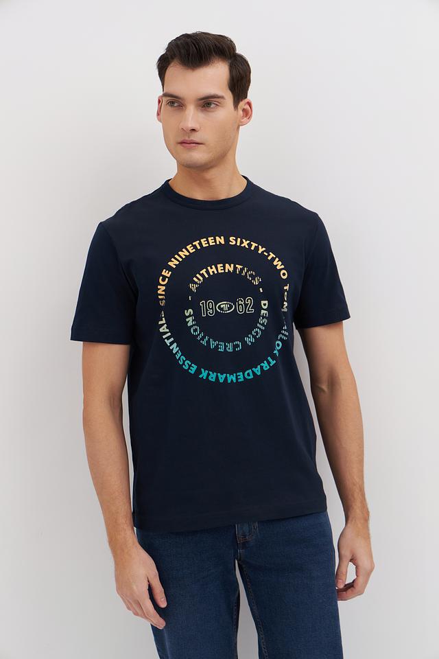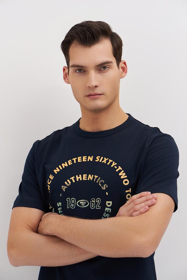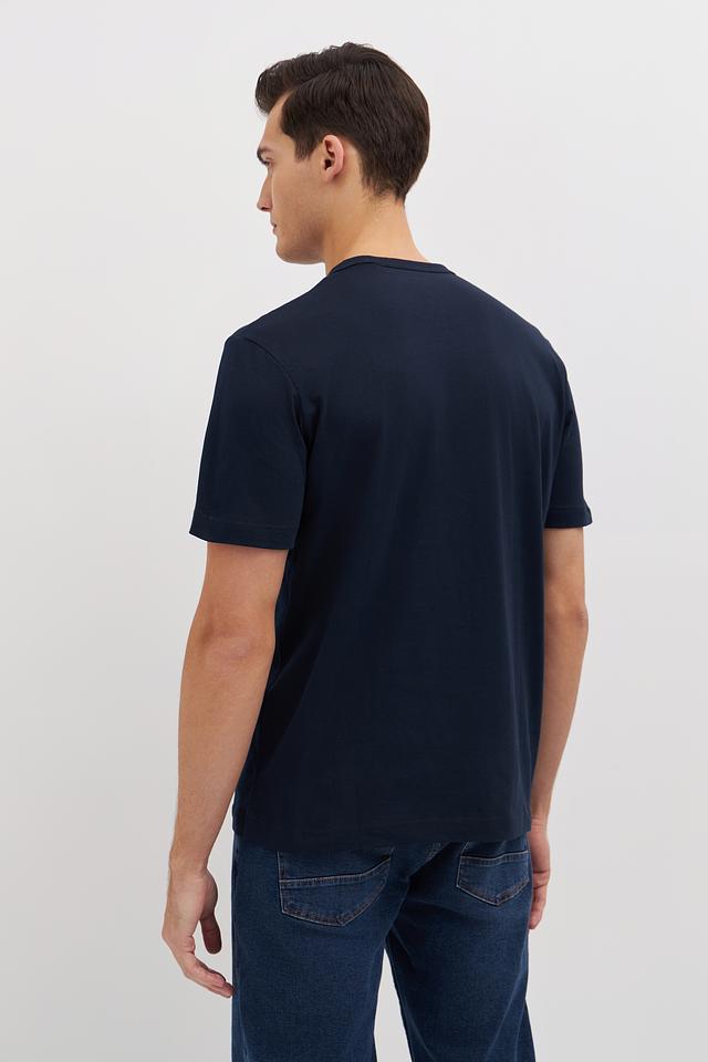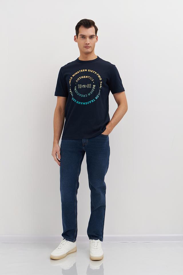 Мужская футболка Tom Tailor темно-синего цвета с круглым логотипом на груди. Изготовлена из 100% хлопка, обеспечивающего комфорт и воздухопроницаемость. Состав: хлопок 100%