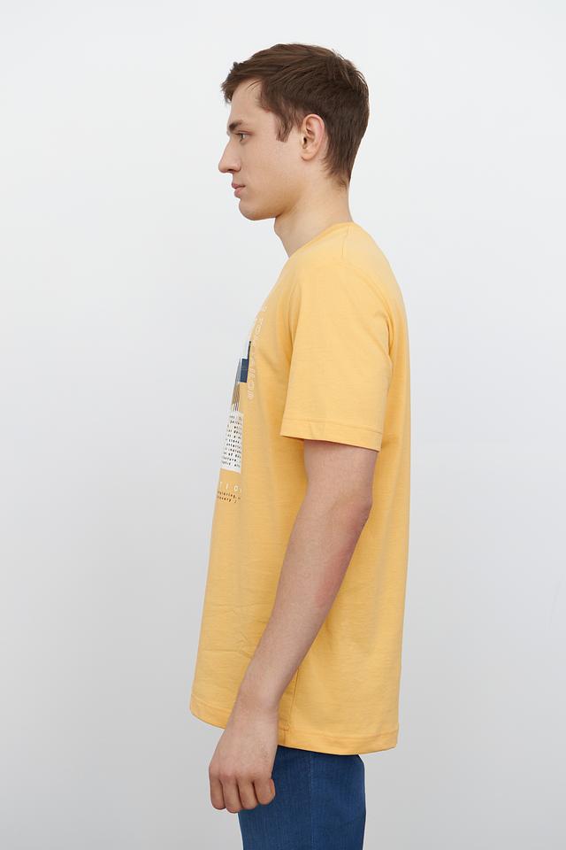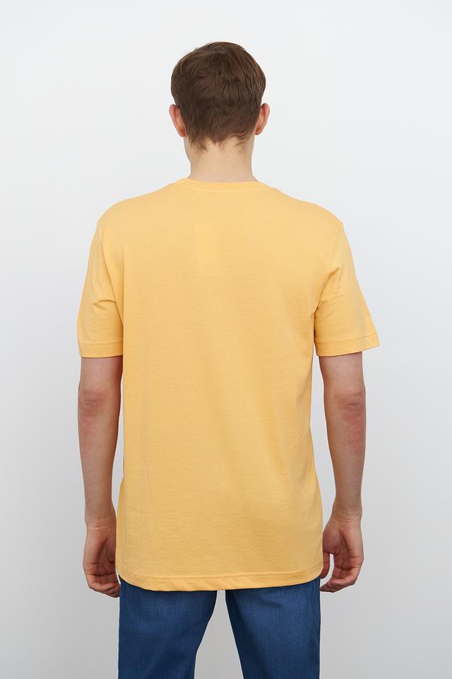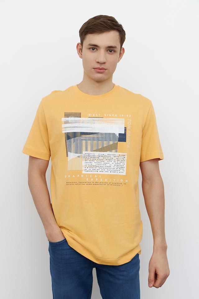 Мужская футболка Tom Tailor горчичного цвета с оригинальным графическим принтом. Изготовлена из 100% хлопка, обеспечивающего комфорт и воздухопроницаемость. Состав: хлопок 100%