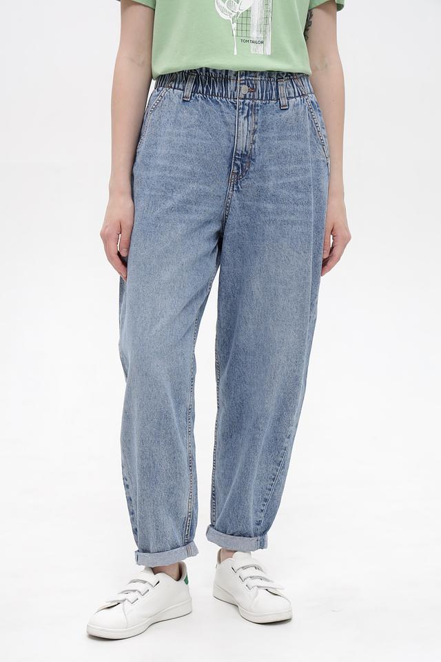 Женские джинсы Tom Tailor голубого цвета в стиле mom fit с завышенной талией и эластичным поясом. Модель выполнена в актуальном вареном стиле и имеет свободный крой. Состав: хлопок 100%