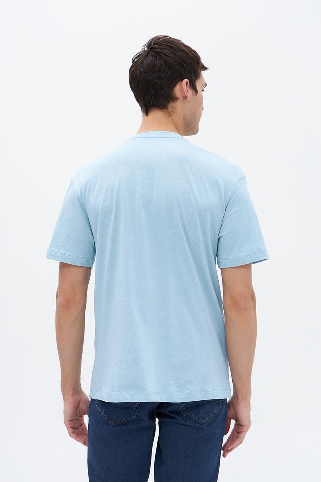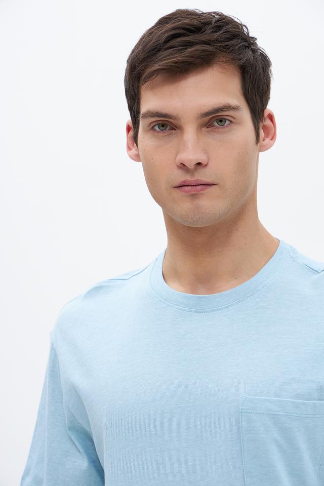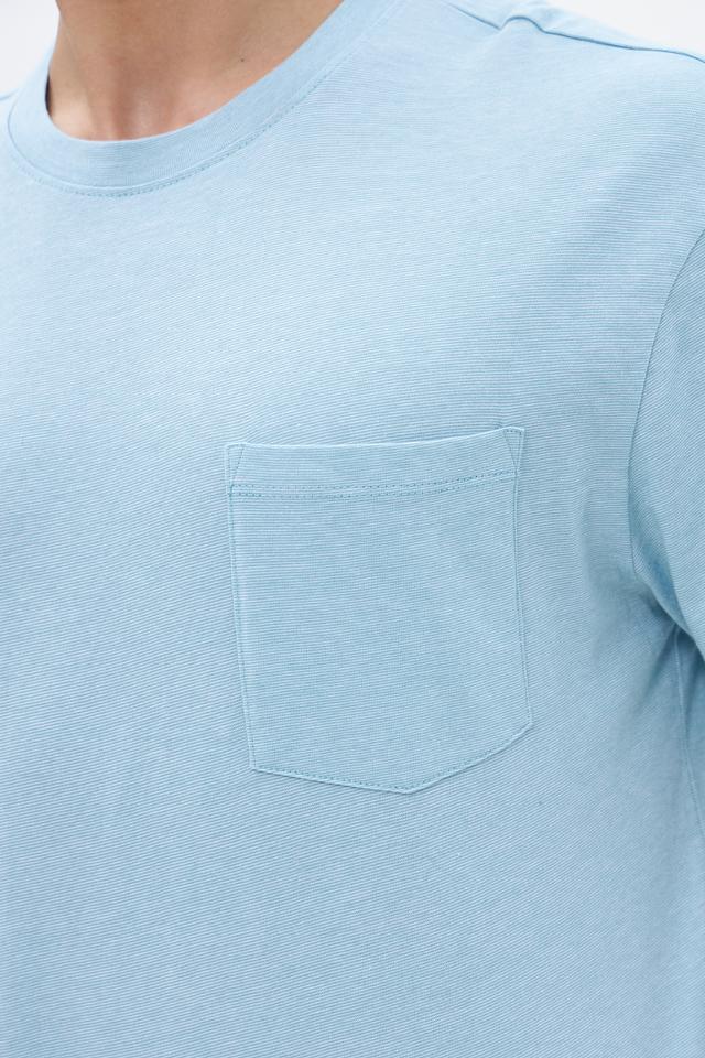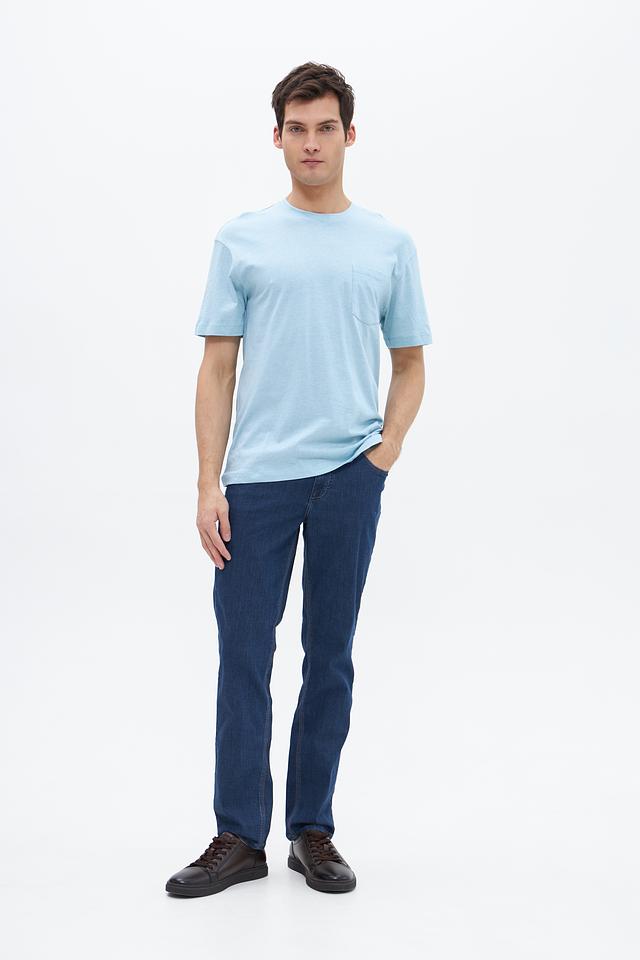 Отличительной особенностью данной модели является накладной карман на груди, который добавляет ей функциональности и стиля. Голубой цвет футболки легко сочетается с другими элементами гардероба, позволяя создавать разнообразные образы.