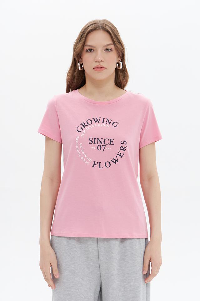 Розовая футболка Tom Tailor denim с круглым вырезом и принтом на передней части. Изготовлена из 100% хлопка, обеспечивающего комфорт и воздухопроницаемость. Стильный и универсальный вариант для повседневного образа. Состав: хлопок 100%