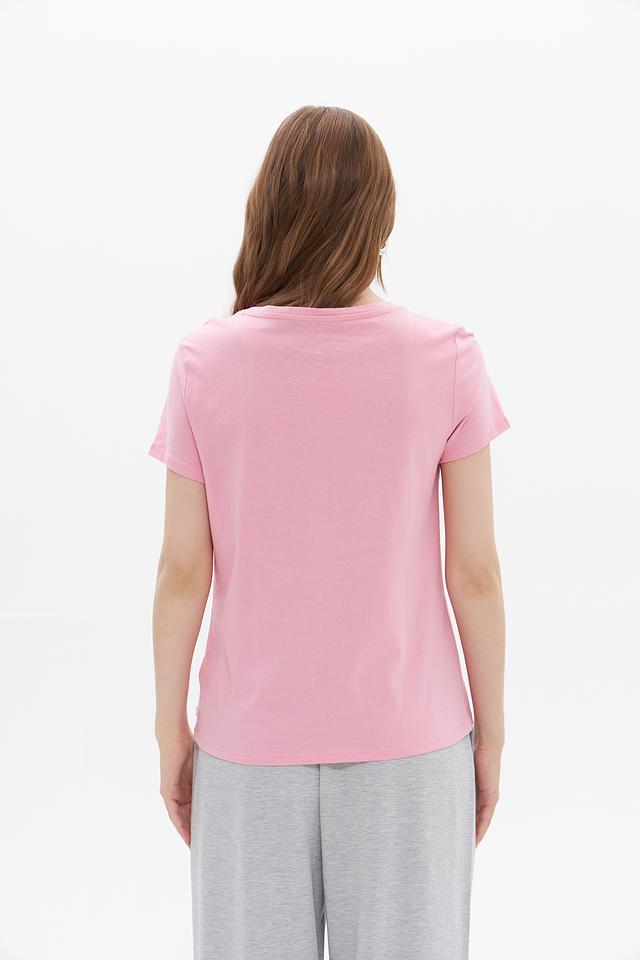 Цвет футболки – нежно-розовый, что делает ее особенно привлекательной и женственной. Она станет отличным выбором для тех, кто ценит комфорт, стиль и качество.