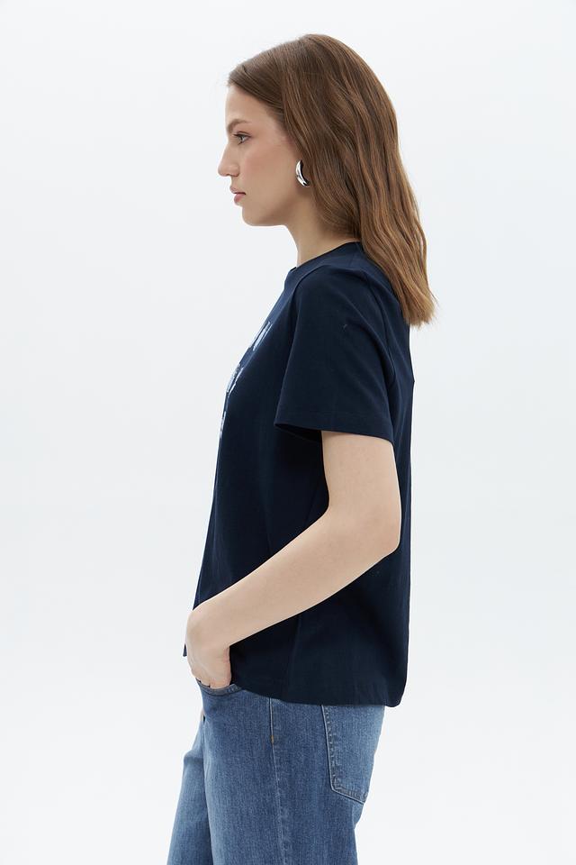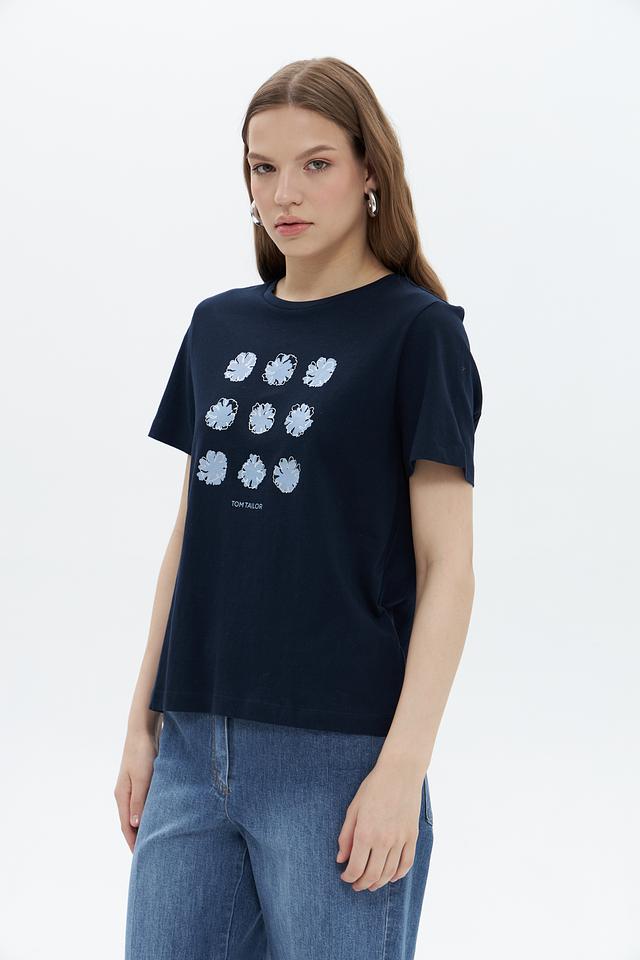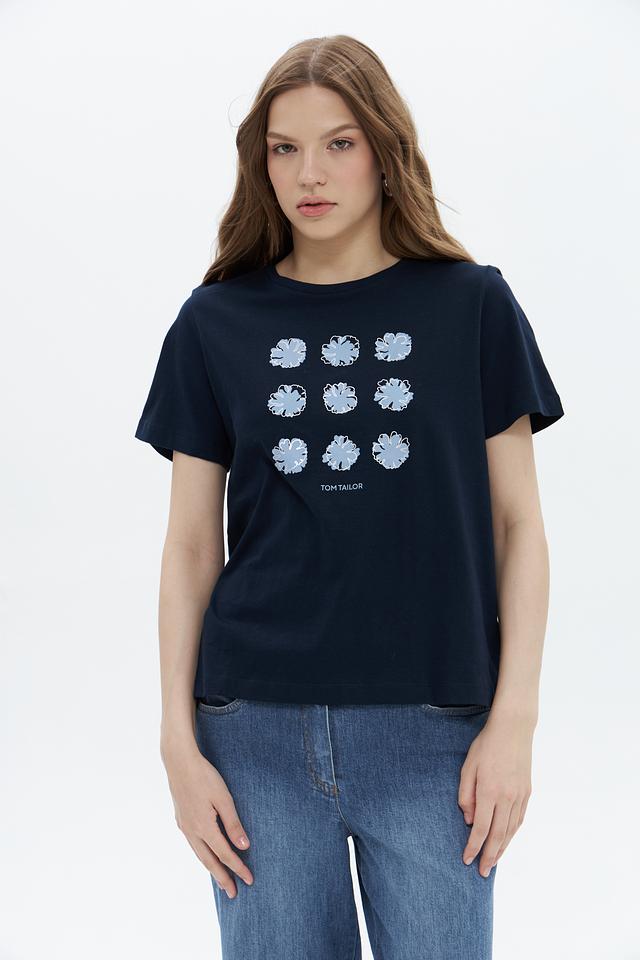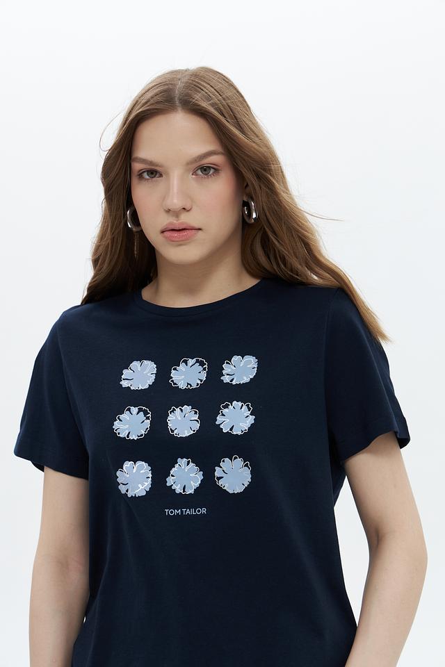 Женская футболка Tom Tailor темно-синего цвета с цветочным принтом – стильный и комфортный выбор для повседневного гардероба. Изготовлена из 100% хлопка, обеспечивающего приятные ощущения на коже. Состав: хлопок 100%