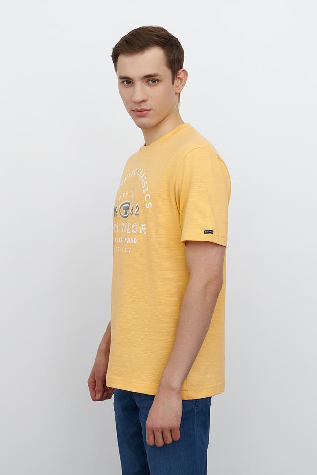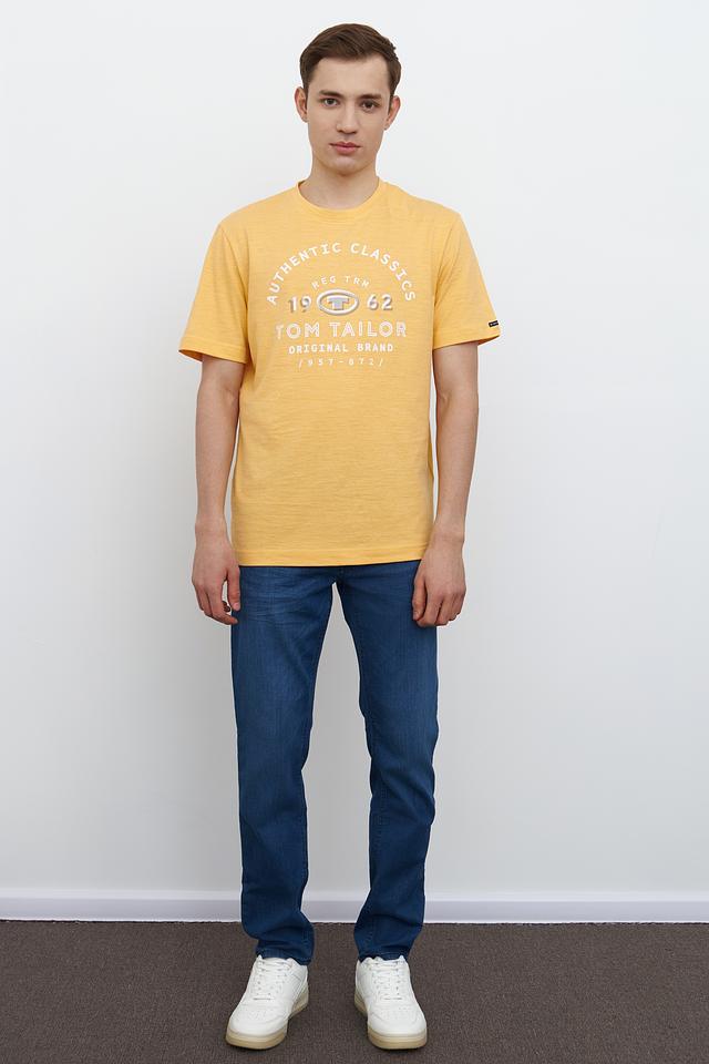 Мужская футболка Tom Tailor жёлтого цвета с оригинальным принтом на передней части. Изготовлена из мягкого хлопка с добавлением полиэстера для комфорта и долговечности. Состав: хлопок 94%, полиэстер 6%