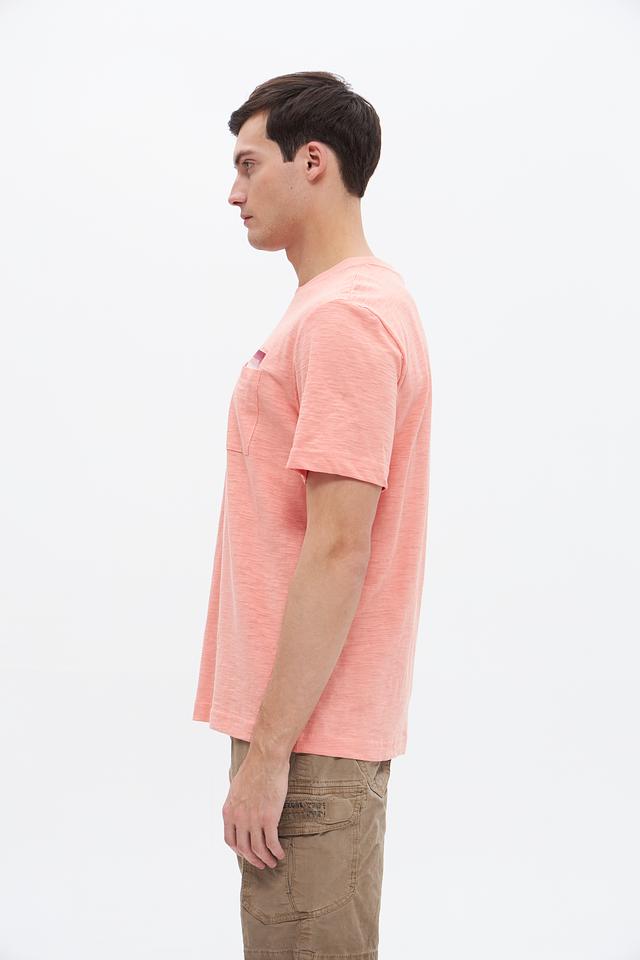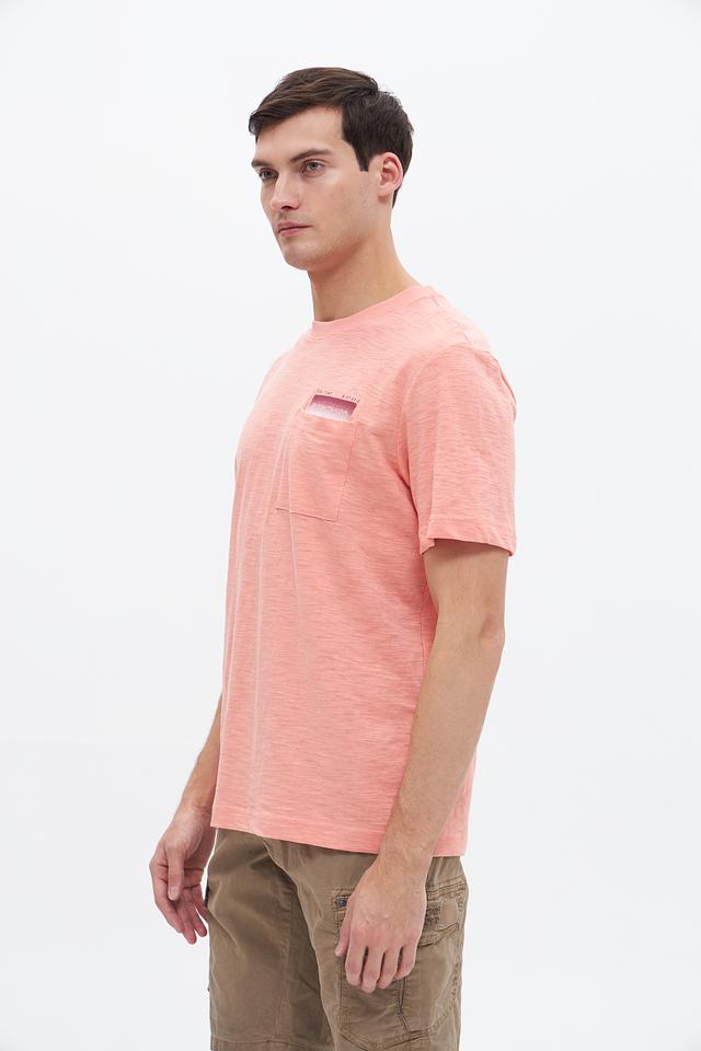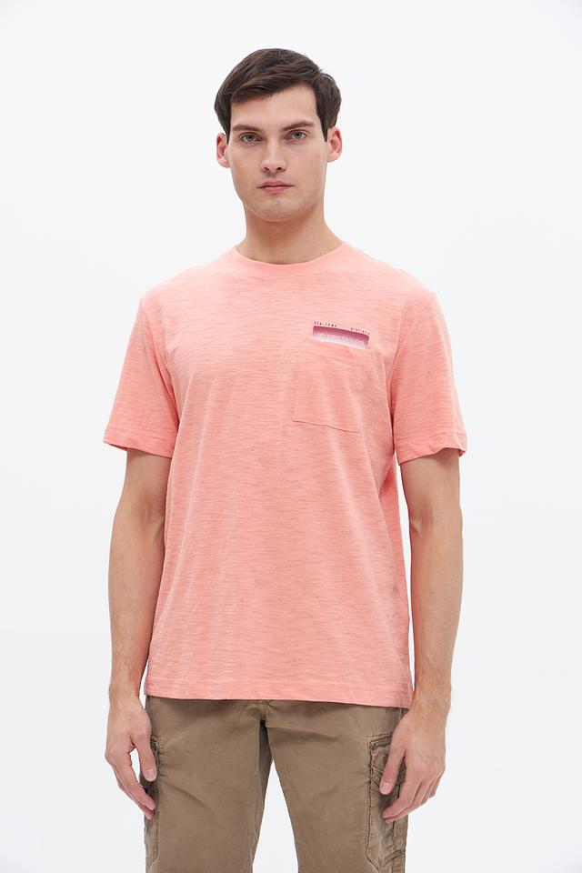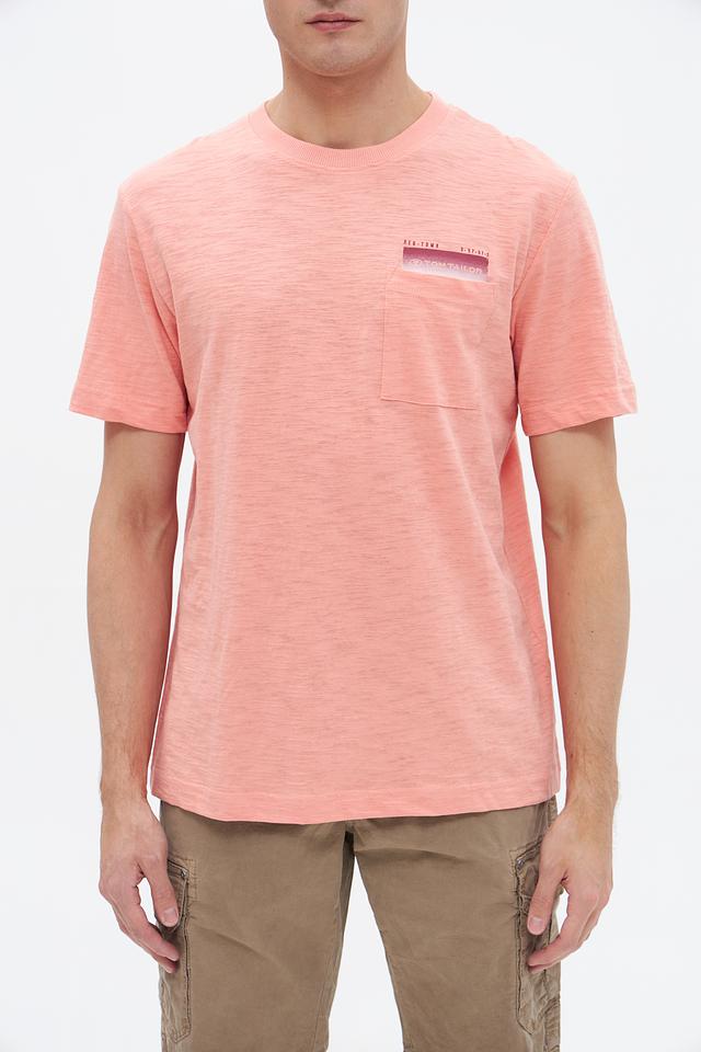 Мужская футболка Tom Tailor персикового цвета – это стильная и комфортная модель из 100% хлопка. Футболка имеет короткий рукав, круглый вырез горловины и нагружный карман с принтом. Состав: хлопок 100%