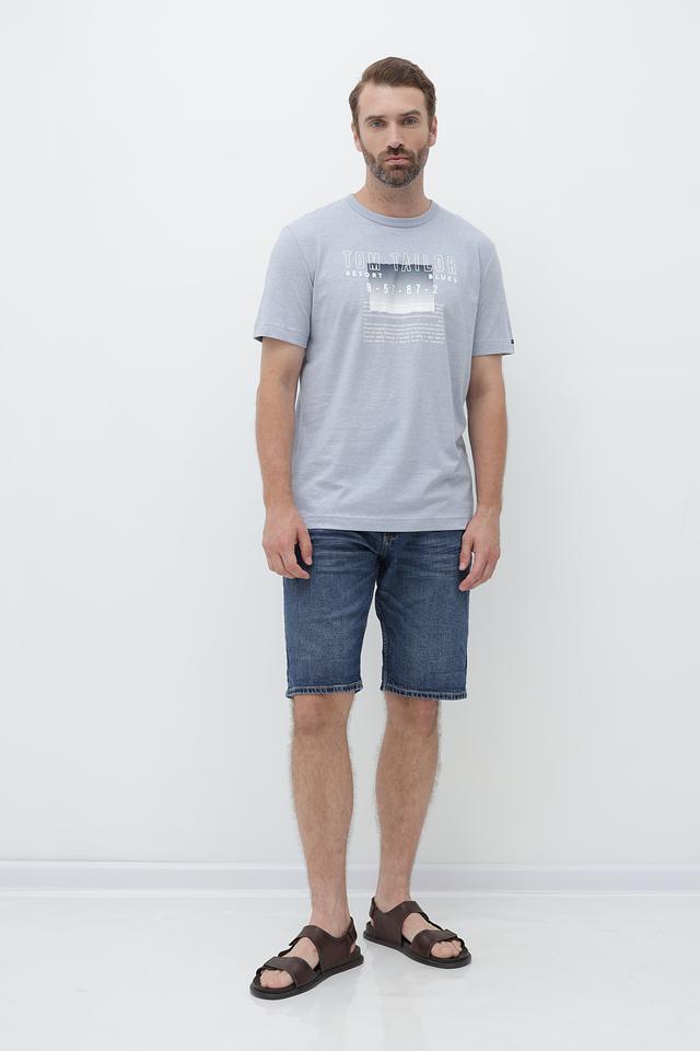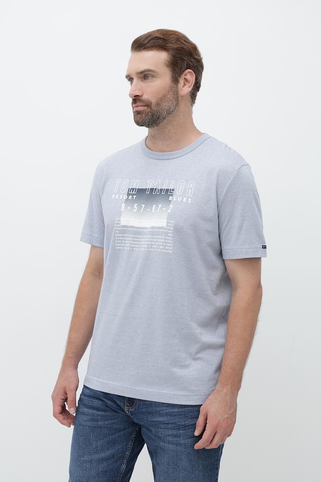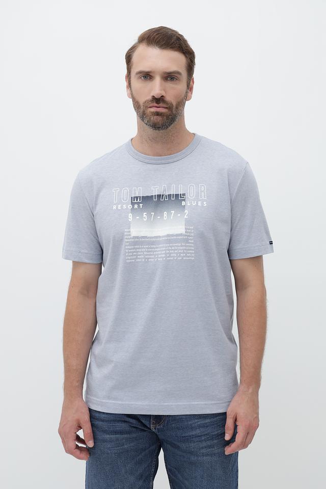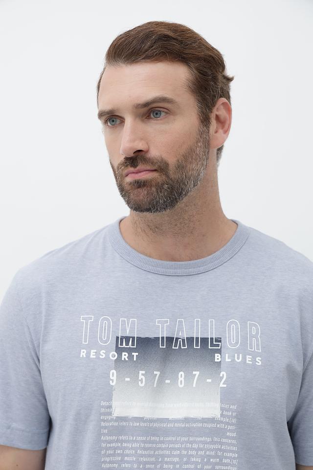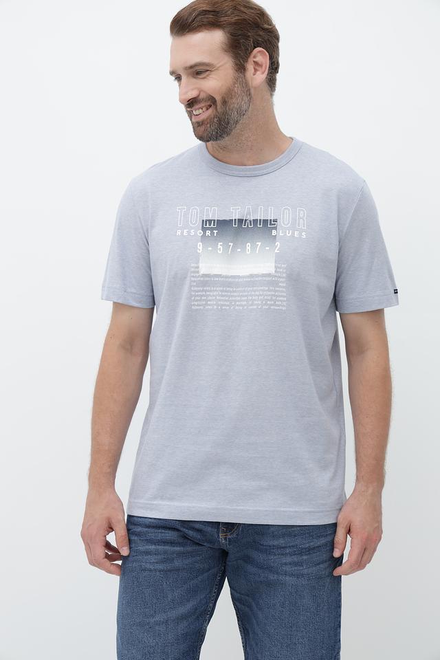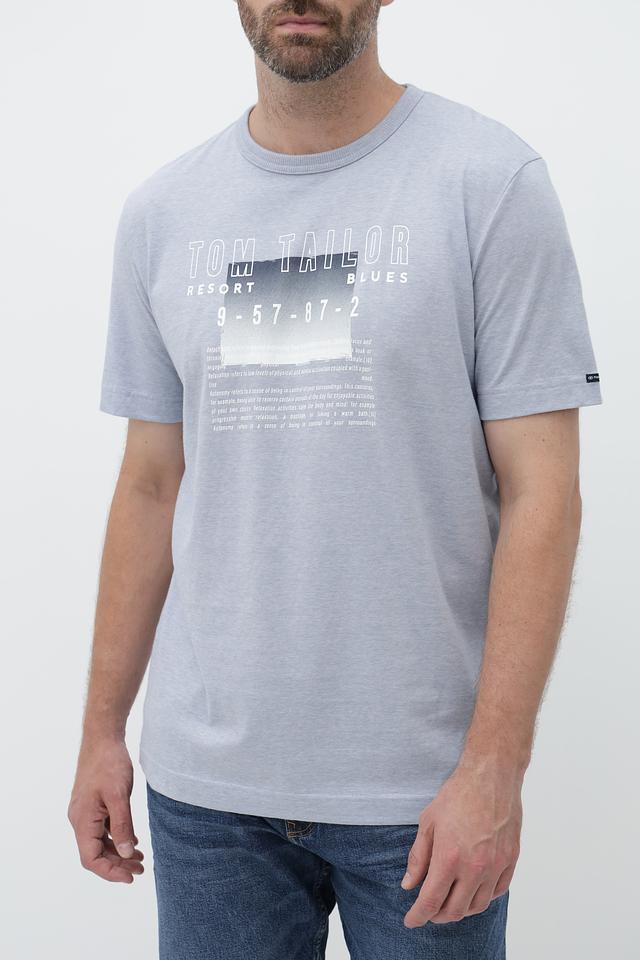 Мужская футболка Tom Tailor серого цвета с оригинальным принтом. Изготовлена из 100% хлопка, обеспечивающего комфорт и воздухопроницаемость. Отличный выбор для повседневного образа. Состав: хлопок 100%
