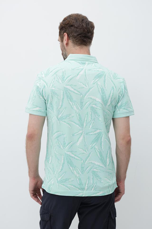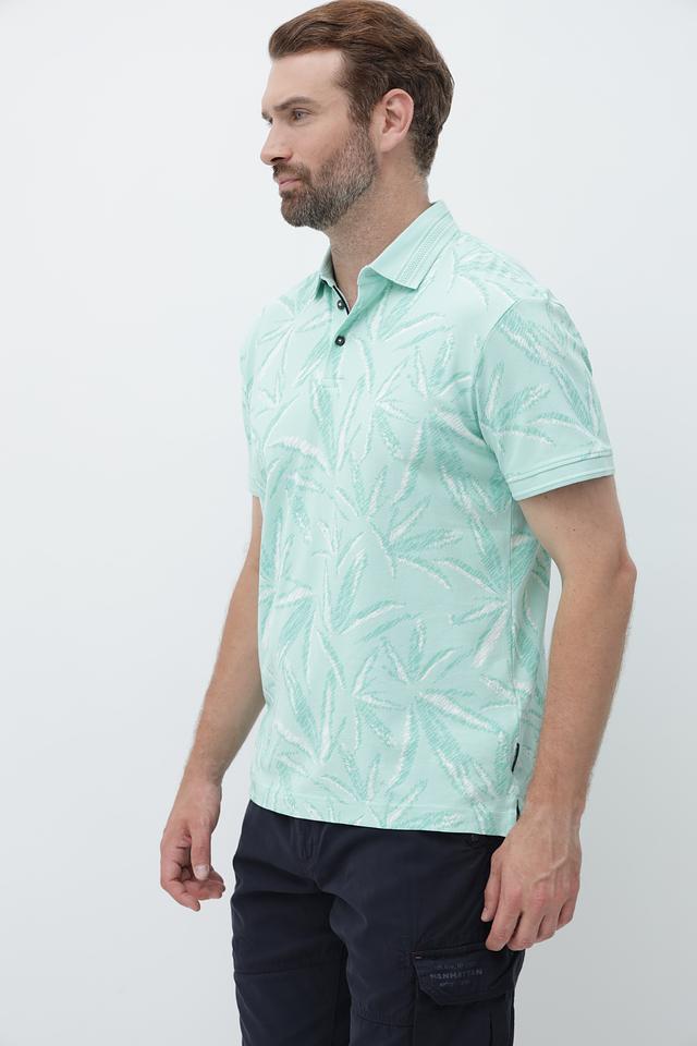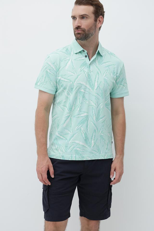 Это мужское поло от Tom Tailor выполнено в нежном мятном цвете и украшено оригинальным тропическим принтом, добавляющим образу свежесть и легкость.