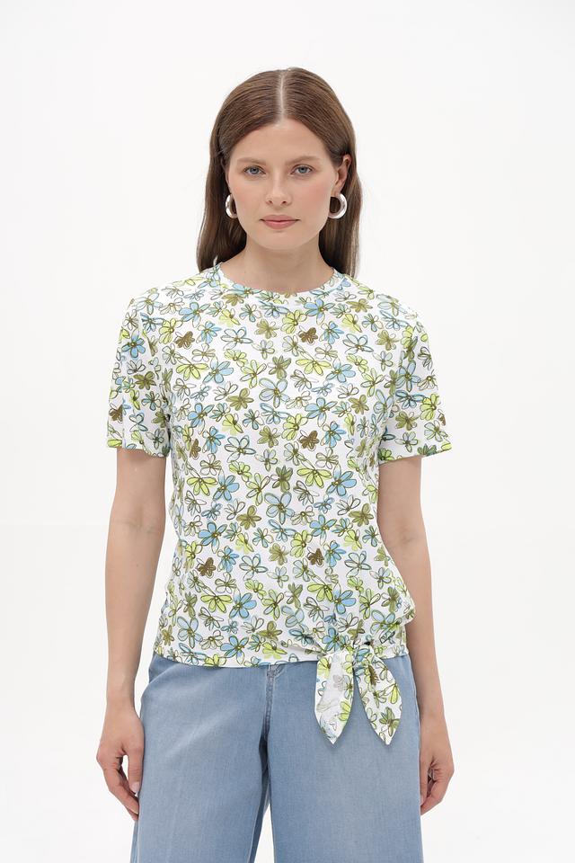 Лёгкая блузка Tom Tailor белого цвета с ярким цветочным принтом и завязками на талии. Изготовлена из 100% хлопка, обеспечивающего комфорт и воздухопроницаемость. Состав: хлопок 100%