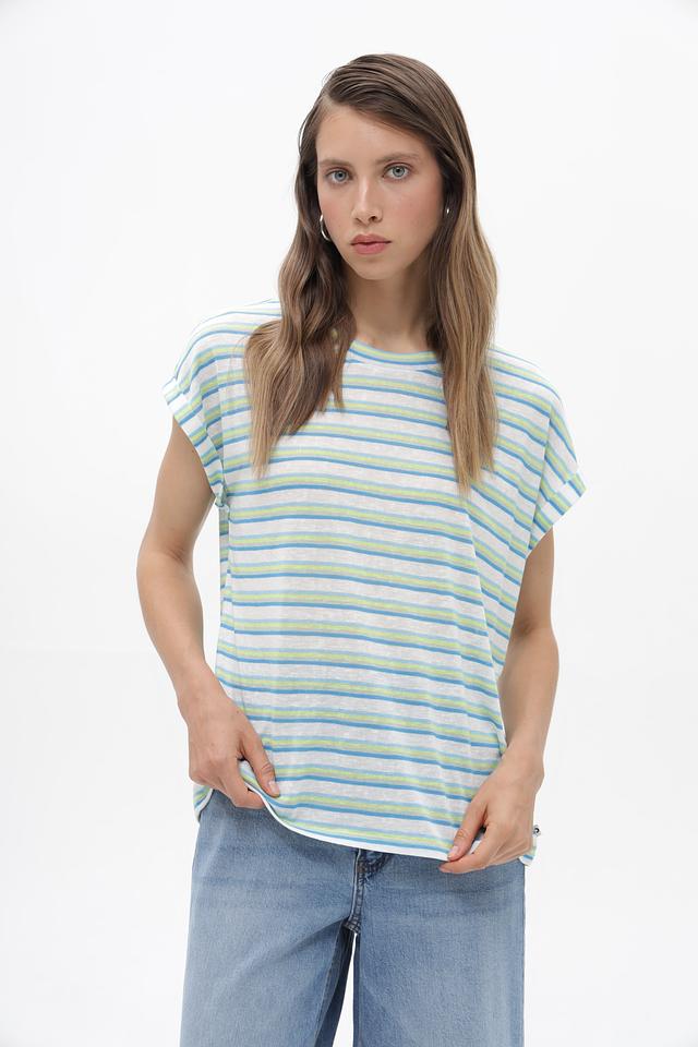 Женская футболка Tom Tailor в полоску, выполнена из мягкой вискозы с добавлением полиэстера. Удобный крой и короткие рукава делают эту футболку идеальным выбором для повседневной носки. Состав: вискоза 70%, полиэстер 30%