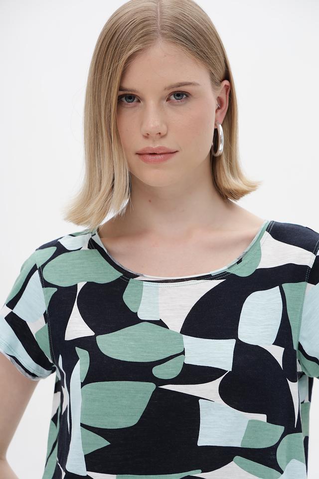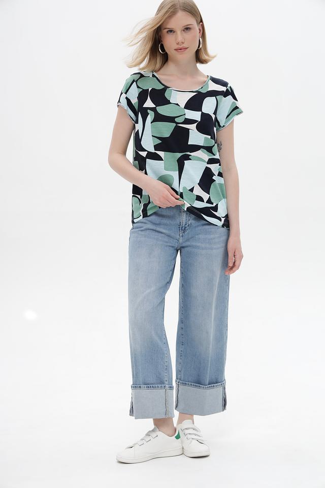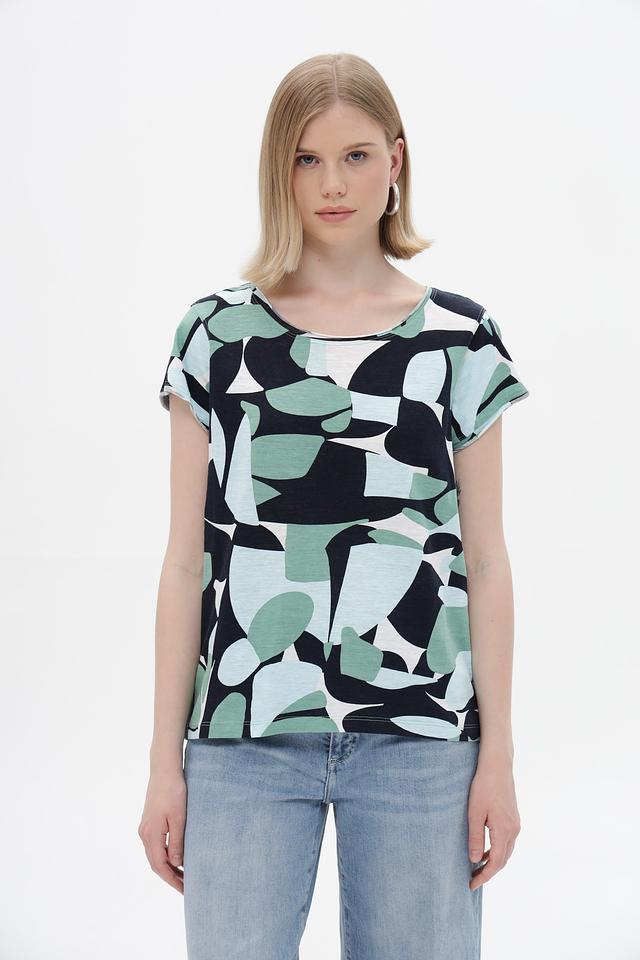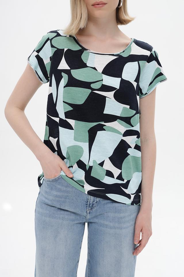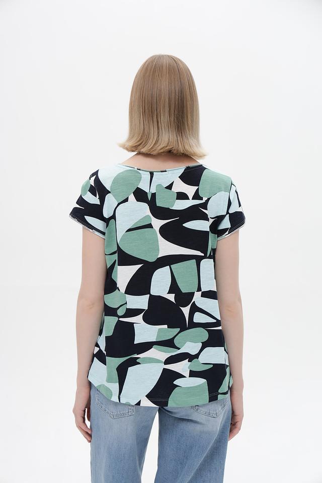 Женская футболка Tom Tailor зеленого цвета с оригинальным абстрактным принтом. Изготовлена из 100% хлопка, обеспечивающего комфорт и воздухопроницаемость. Стильный и удобный вариант для повседневного образа. Состав: хлопок 100%