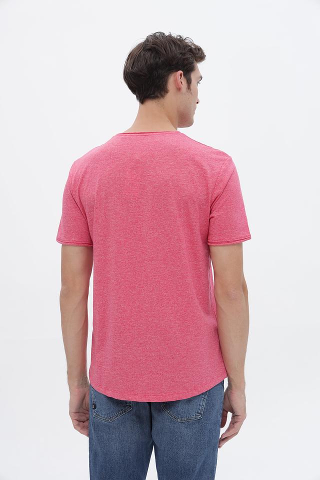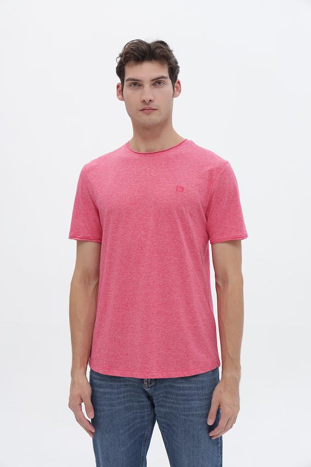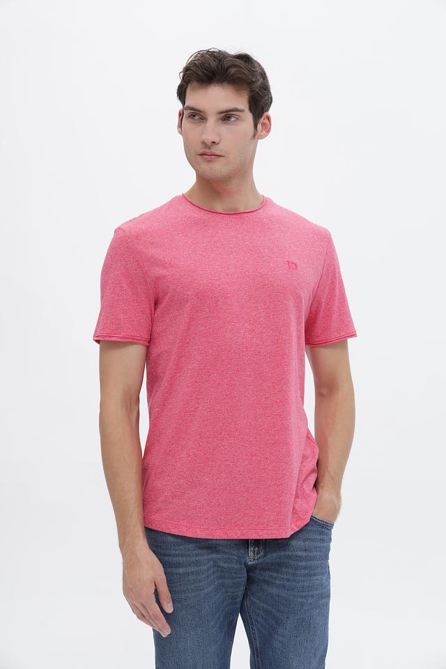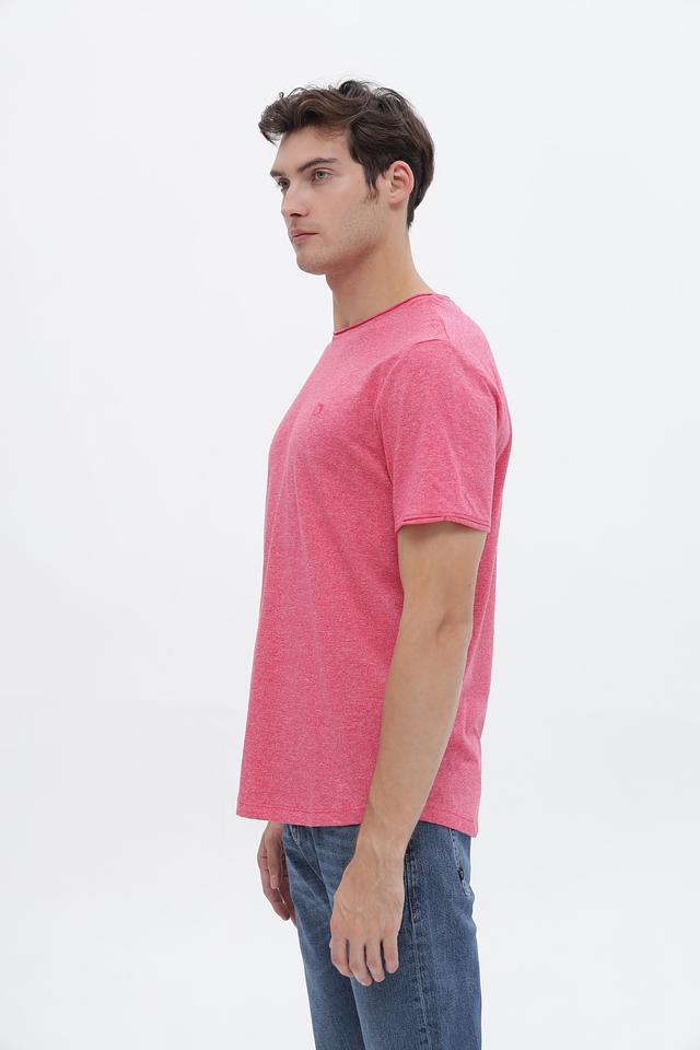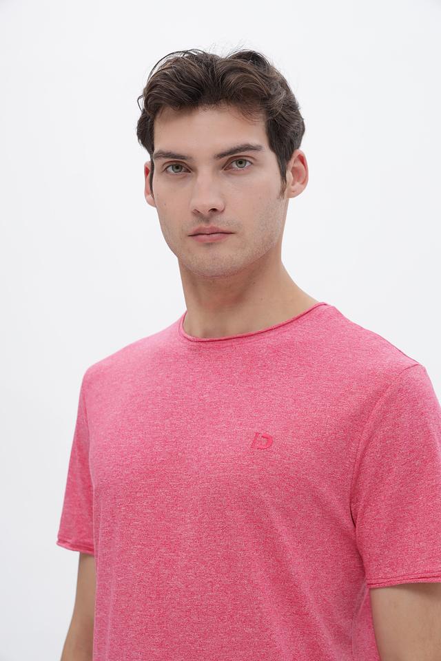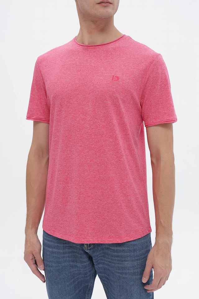 Футболка имеет классический крой и круглый вырез горловины. Розовый цвет с меланжевой текстурой придает ей современный и непринужденный вид. Небольшой логотип бренда, вышитый на груди, добавляет узнаваемости.