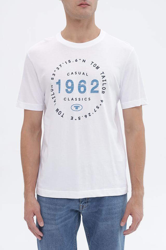 Белая футболка Tom Tailor CASUAL 1962 из 100% хлопка с круглым вырезом и оригинальным принтом на передней части. Идеальный выбор для создания повседневного образа. Состав: хлопок 100%