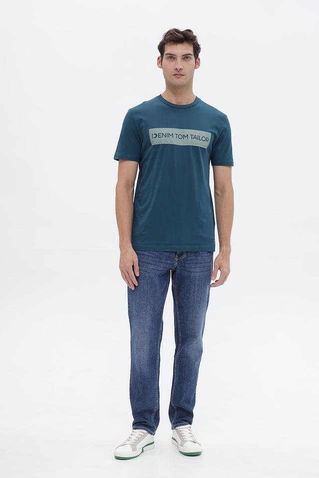 Мужская футболка Tom Tailor denim синего цвета с принтом на груди. Изготовлена из 100% хлопка, обеспечивающего комфорт и воздухопроницаемость. Отличный выбор для повседневного образа. Состав: хлопок 100%