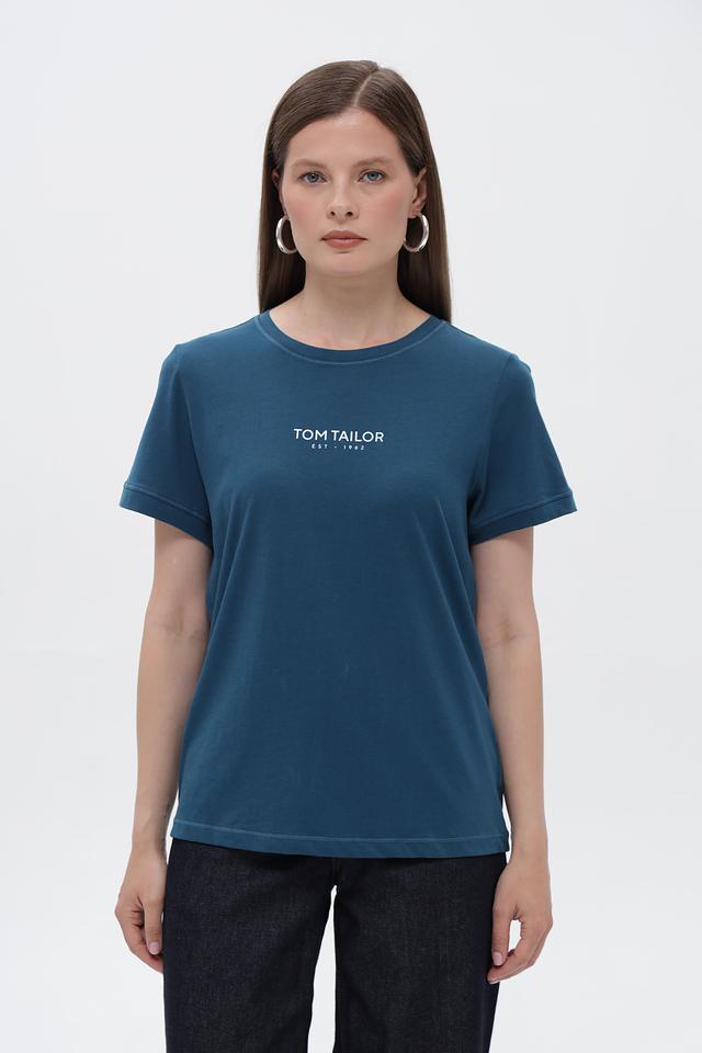 На передней части футболки расположен небольшой логотип бренда Tom Tailor, выполненный в контрастном цвете, что добавляет ей стильный и узнаваемый вид. Эта футболка отлично сочетается с джинсами, шортами или юбками, позволяя создавать разнообразные образы.