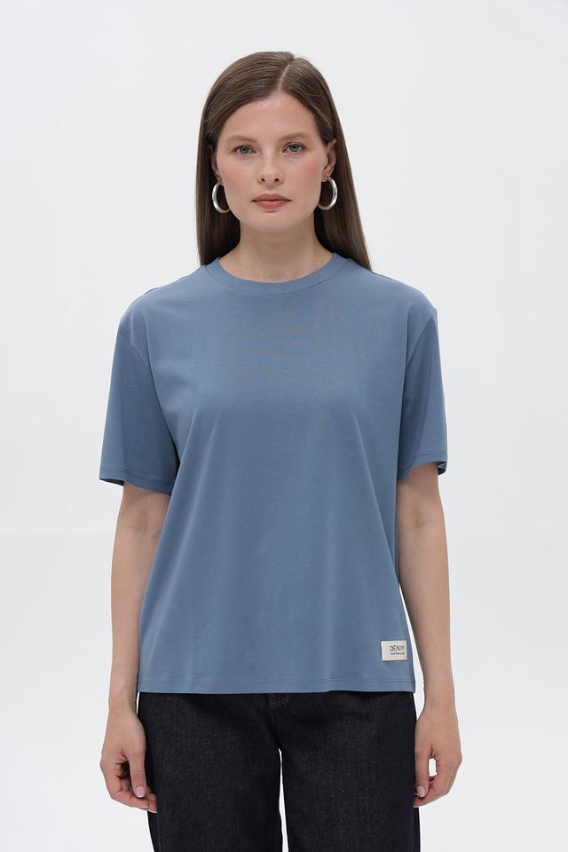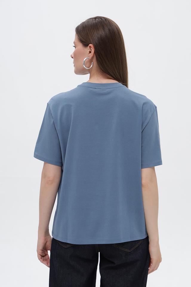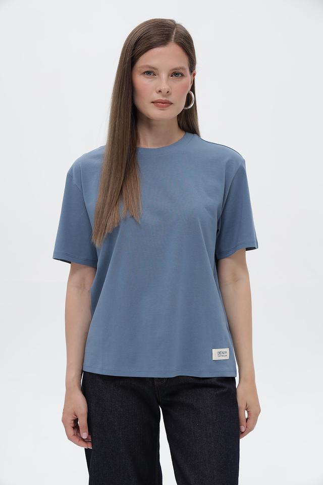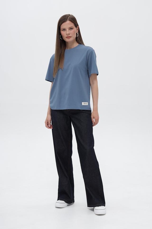 Футболка имеет прямой крой, который подходит для любой фигуры. Короткие рукава и классический круглый вырез делают ее универсальной для различных образов. Голубой цвет легко сочетается с другими элементами одежды, позволяя создавать разнообразные стильные комбинации.