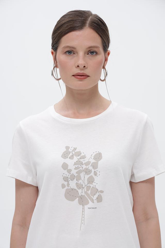Белая футболка Tom Tailor с растительным принтом. Изготовлена из 100% хлопка, обеспечивающего комфорт в носке. Отличный выбор для создания повседневного образа. Состав: хлопок 100%