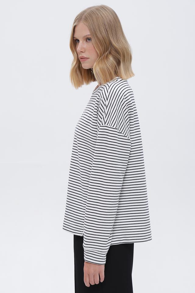 Женский пуловер от бренда Tom Tailor – это стильное и удобное решение для повседневного гардероба. Модель выполнена в классической бело-черной полоске, что делает ее универсальной и легко сочетаемой с другими вещами.