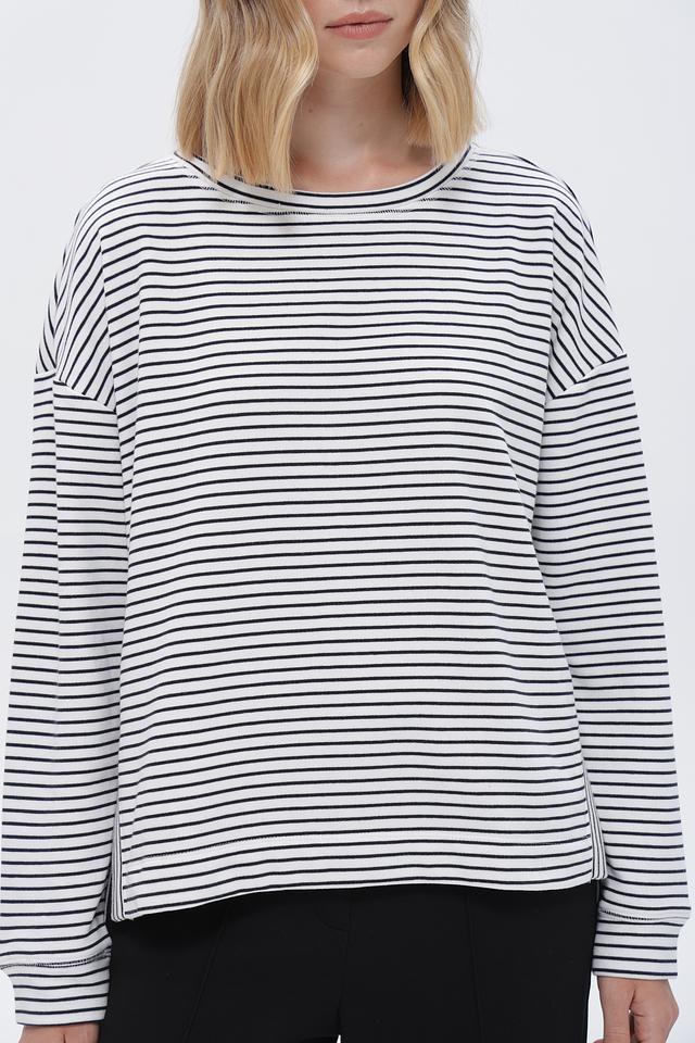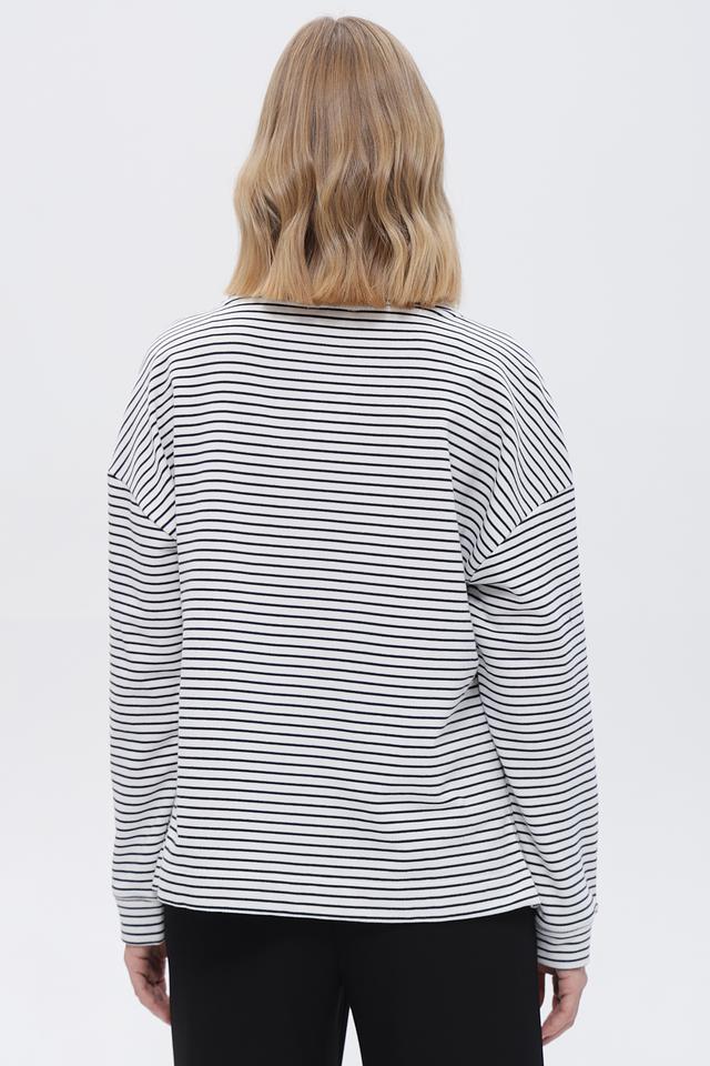 Женский пуловер Tom Tailor в классическую бело-черную полоску. Модель выполнена из мягкого хлопка с добавлением полиэстера для комфорта и износостойкости. Повседневный стиль для создания стильных образов. Состав: хлопок 60%, полиэстер 40%