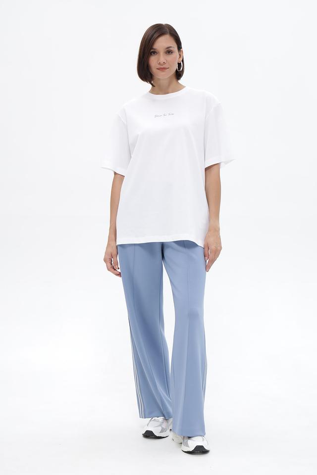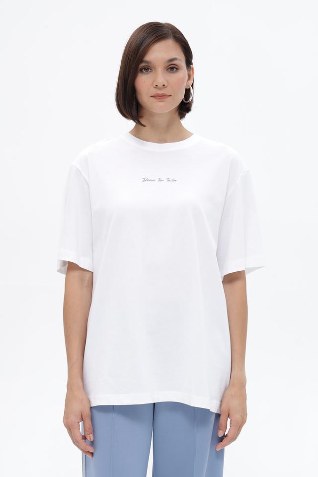 Футболка имеет свободный крой, который не сковывает движения и позволяет создать расслабленный образ. На передней части футболки расположен небольшой логотип бренда, выполненный в тон изделия.
