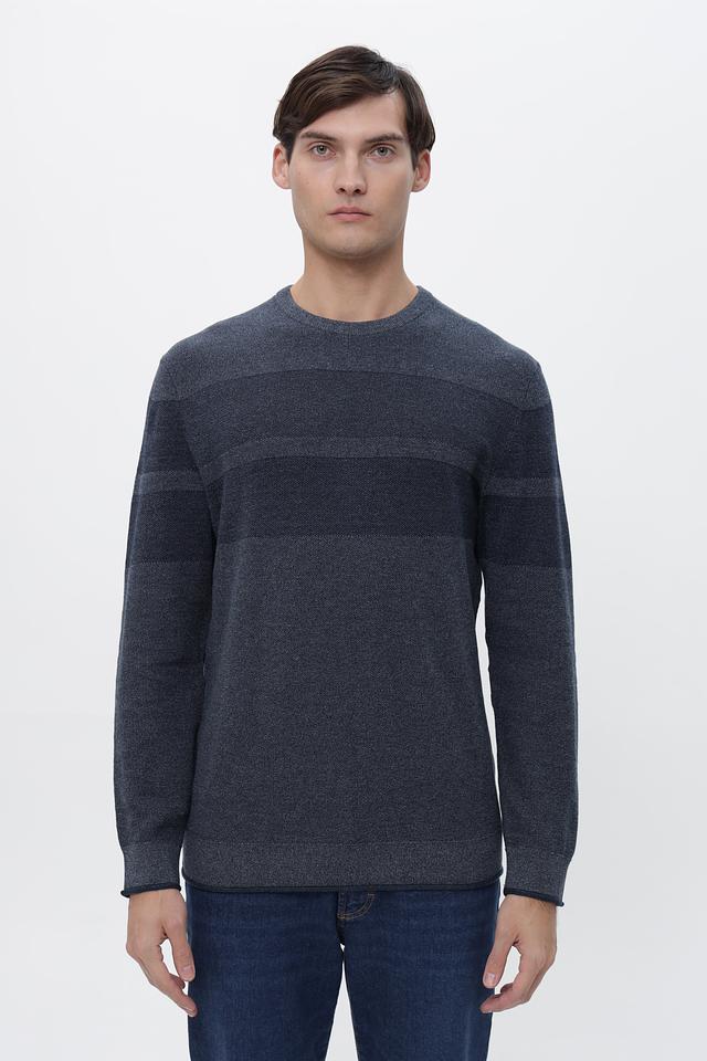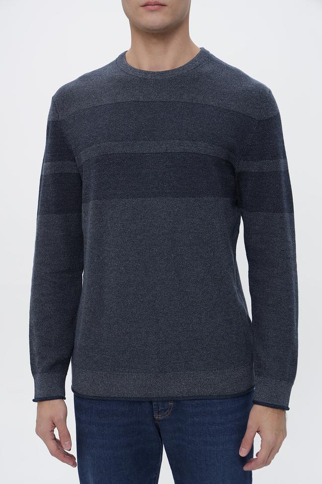 Мужской джемпер Tom Tailor серого цвета с горизонтальными полосами. Изготовлен из хлопка с добавлением полиамида для большей износостойкости. Состав: хлопок 90%, полиамид 10%