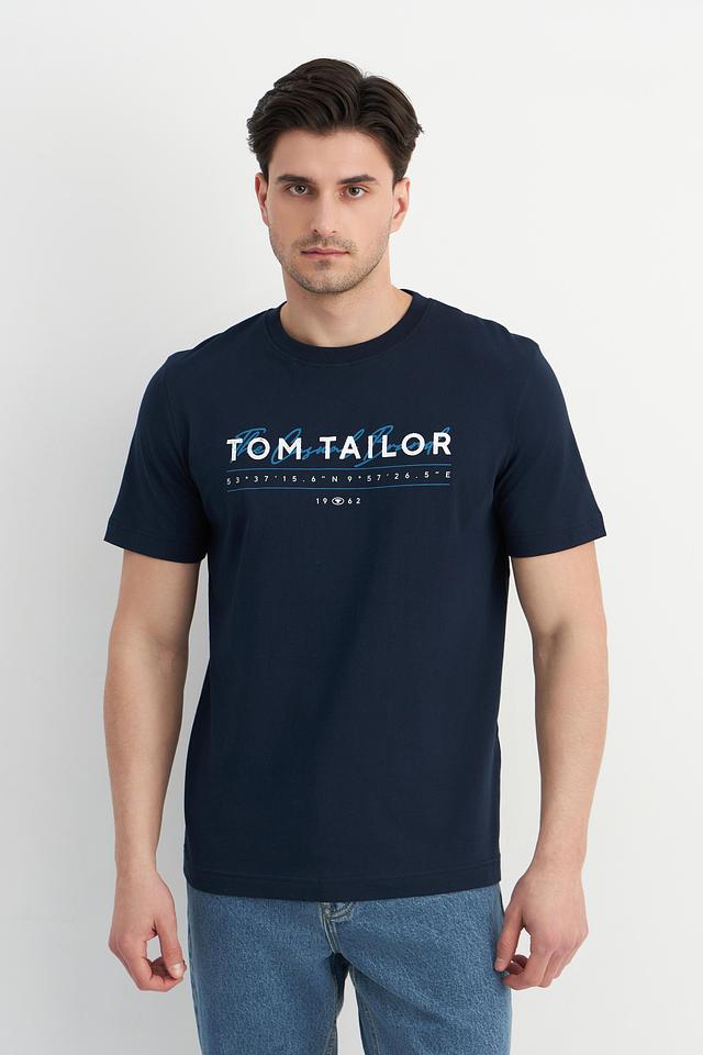 Мужская футболка Tom Tailor тёмно-синего цвета с ярким логотипом на груди. Изготовлена из 100% хлопка, обеспечивающего комфорт и воздухопроницаемость. Отличный выбор для повседневного образа. Состав: хлопок 100%