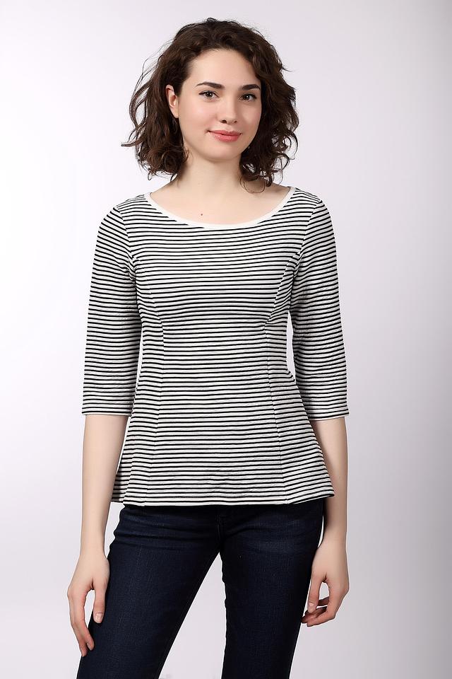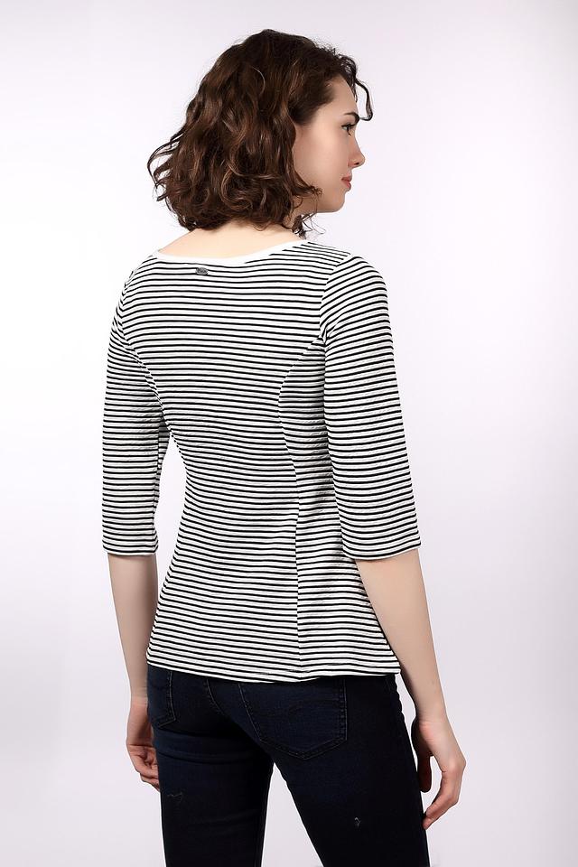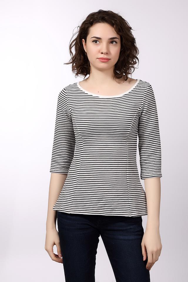 Блуза Tom Tailor в классическую чёрно-белую полоску – стильное и универсальное решение для повседневного гардероба. Модель с округлым вырезом и рукавом 3/4, выполненная из мягкого и приятного к телу материала. Состав: полиэстер 69%, хлопок 31%