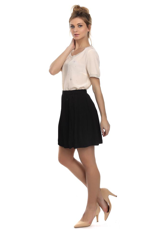 Чёрная плиссированная юбка от Tom Tailor – стильное и универсальное решение для создания модных образов. Короткая длина и эластичный пояс обеспечивают комфортную посадку и свободу движений. Состав: полиэстер 100%