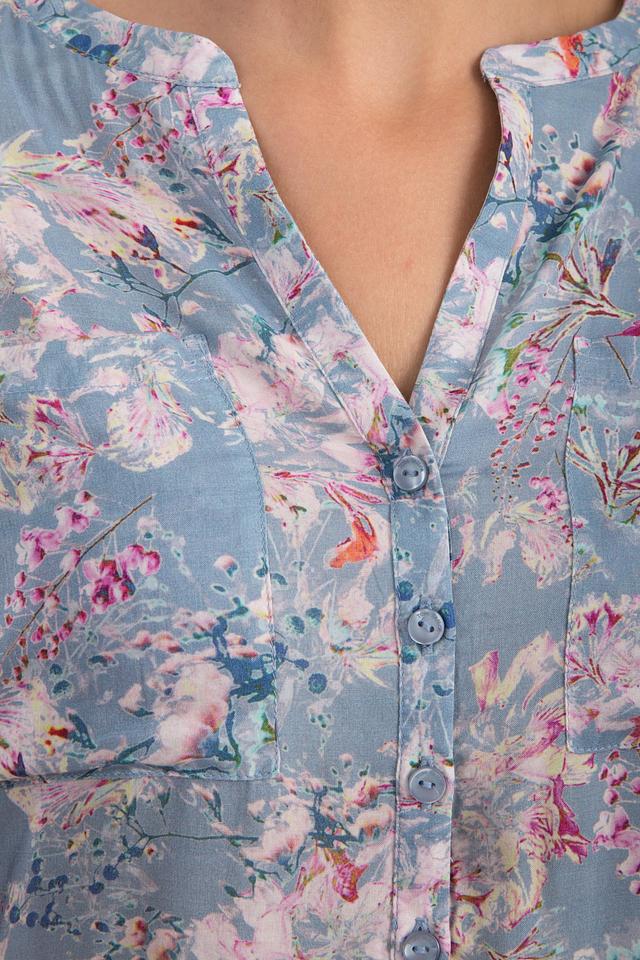 Эта стильная блуза от Tom Tailor выполнена из мягкой и приятной к телу вискозы. Преобладающий цвет блузы – голубой, который служит идеальным фоном для яркого цветочного принта.