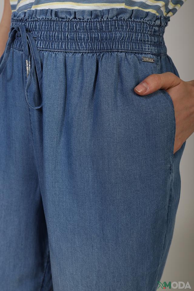 Женские брюки от Tom Tailor голубого цвета – это удобная и стильная модель в стиле casual. Брюки выполнены из мягкого лиоцела, имеют завышенную талию и эластичный пояс с кулиской, а также манжеты внизу брючин. Состав: лиоцел 100%