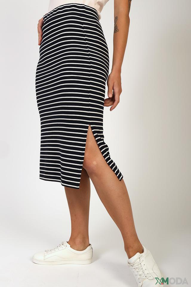 Эта юбка от Tom Tailor станет отличным дополнением к вашему гардеробу. Модель выполнена в черно-белую полоску, что делает ее универсальной и легко сочетаемой с различными топами и обувью.