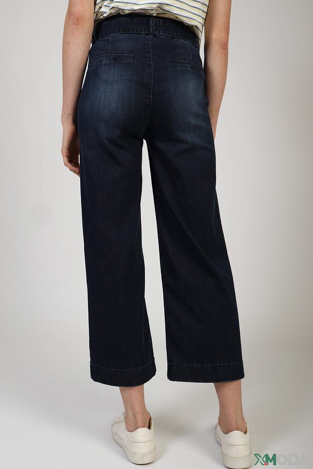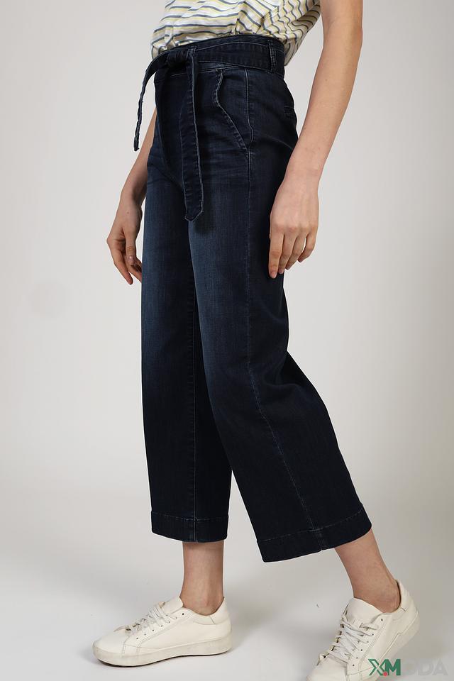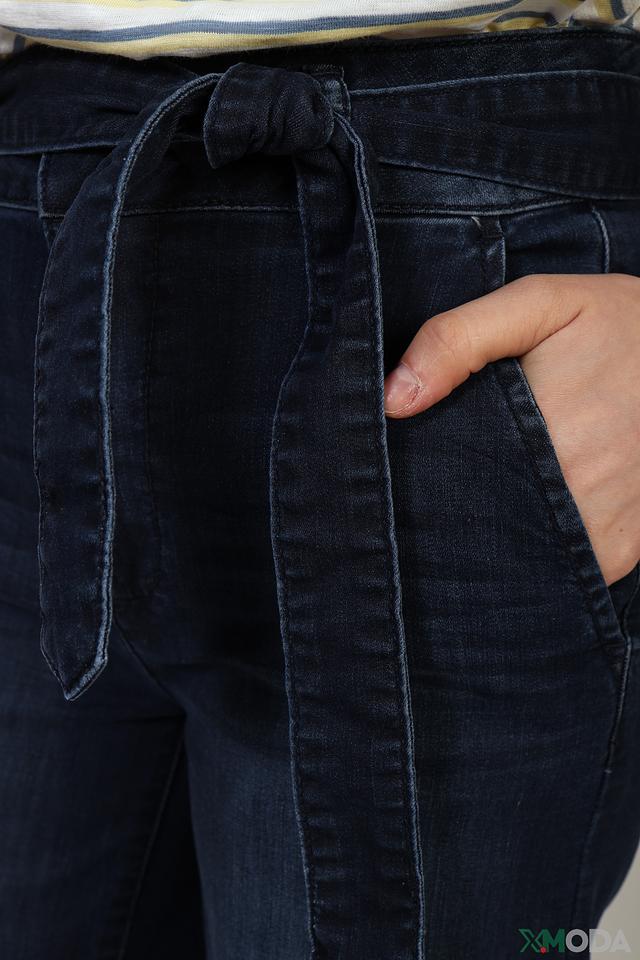 Особенностью этих джинсов является широкий пояс с завязками, который можно использовать для создания более приталенного силуэта. Клёш от колена придает брюкам современный и модный вид.