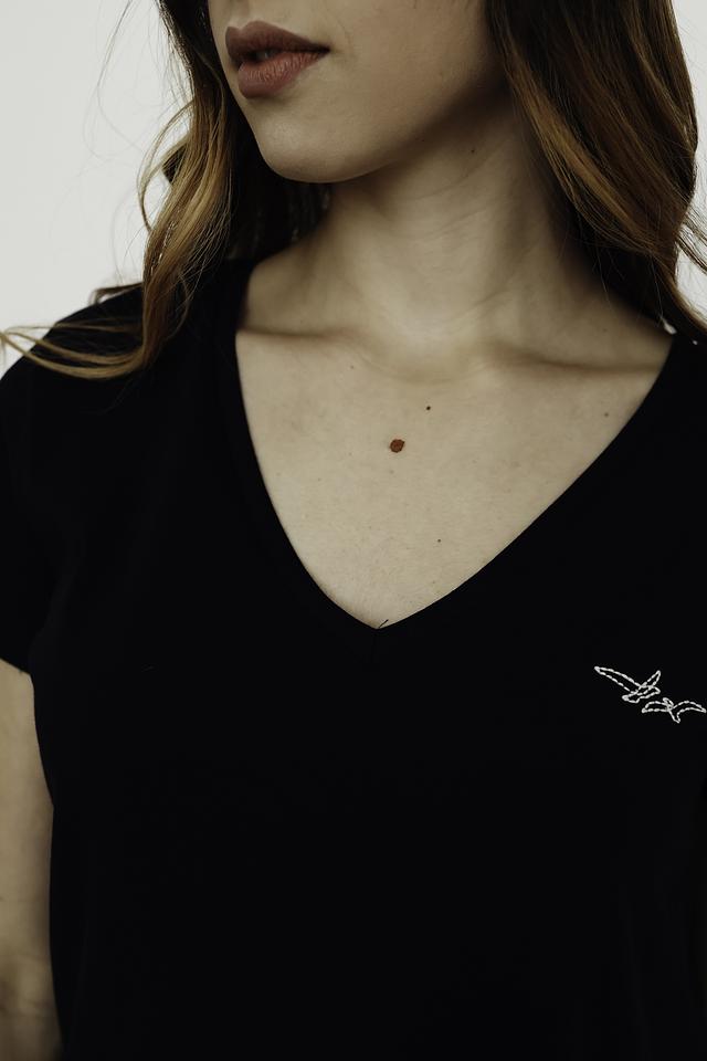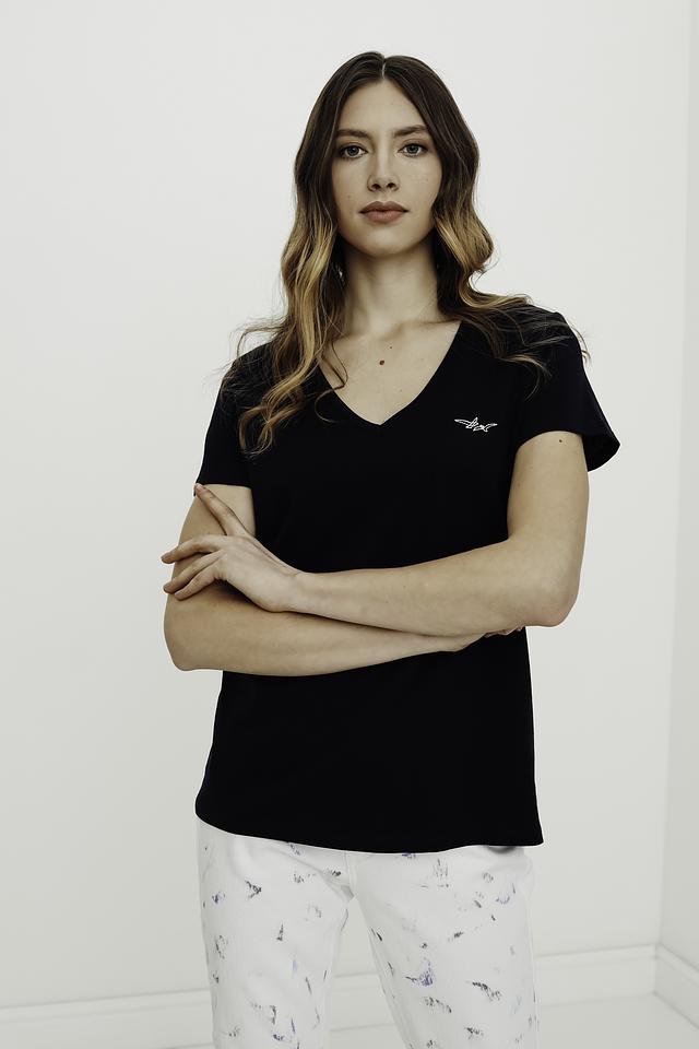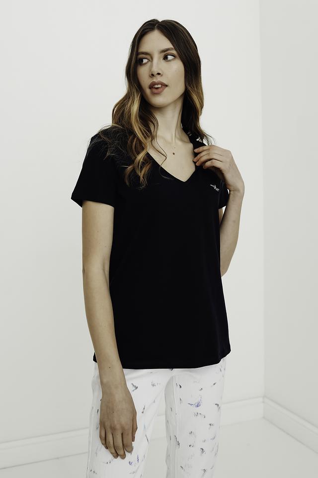 Чёрная футболка Tom Tailor denim girl из 100% хлопка — это удобная и стильная базовая вещь. V-образный вырез и небольшой логотип на груди добавляют изысканности образу. Состав: хлопок 100%