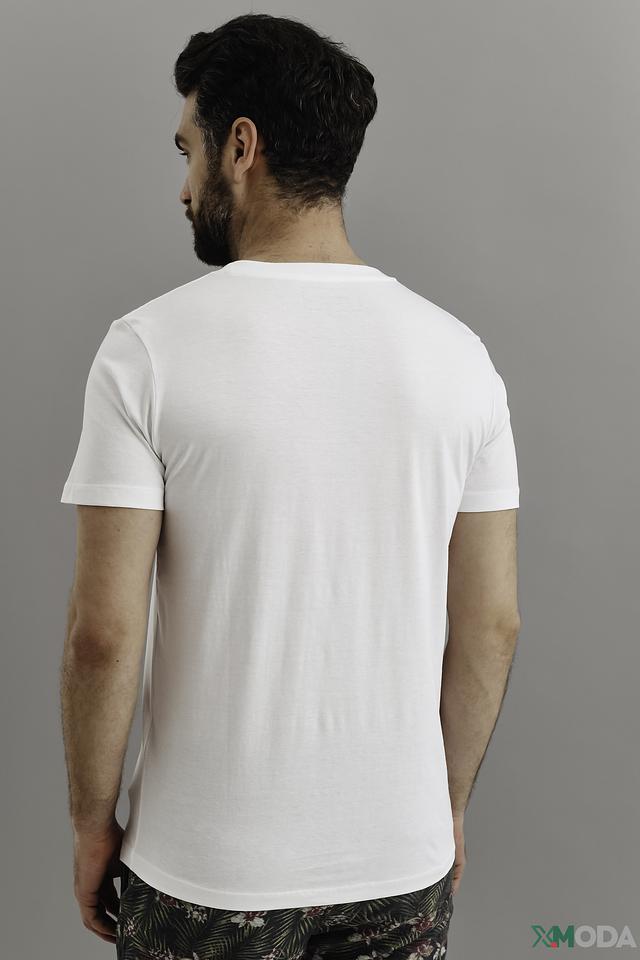 Футболка имеет классический крой и короткий рукав, что делает ее идеальной для теплой погоды. На груди расположен стильный принт с логотипом бренда, добавляющий образу индивидуальность.
