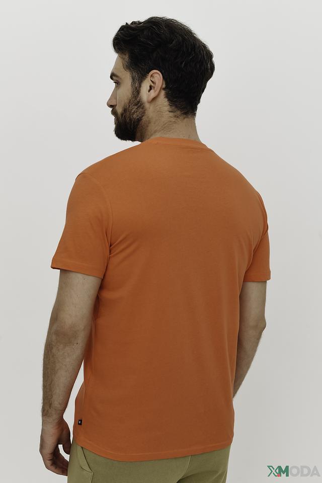 Яркий оранжевый цвет и оригинальный принт с логотипом бренда и географическими координатами делают эту футболку заметной и стильной. Прямой крой обеспечивает свободу движений, а круглый вырез горловины – классический вид.