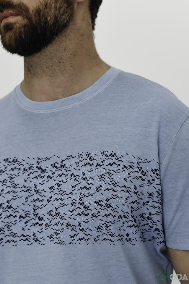 Эта футболка от Tom Tailor станет прекрасным дополнением к вашему летнему гардеробу. Она выполнена в приятном голубом цвете и украшена стильным принтом в виде абстрактных волн.