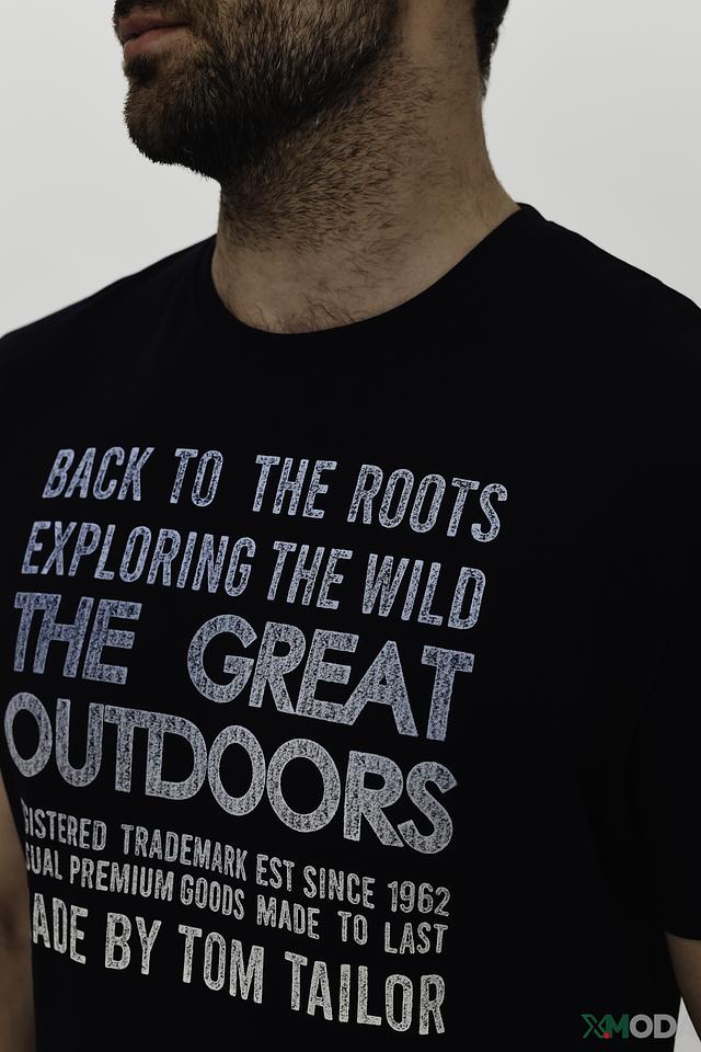 Чёрная футболка Tom Tailor с оригинальным принтом – стильный выбор для повседневного образа. Изготовлена из 100% хлопка, обеспечивающего комфорт и воздухопроницаемость. Состав: хлопок 100%