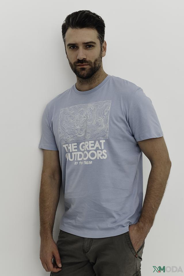 Голубая футболка Tom Tailor с оригинальным принтом "The Great Outdoors" станет отличным дополнением к вашему гардеробу. Изготовлена из 100% хлопка, обеспечивая комфорт и воздухопроницаемость. Состав: хлопок 100%
